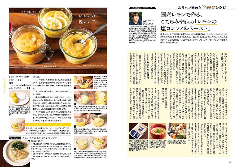 第2特集は、人気料理家12人による、手作り発酵食企画。食材や料理を知り尽くしている料理家だからこそ、日々味が変化し、うまみが増えていく発酵調味料や発酵食の魅力と可能性に惹かれているようです。パパっと簡単にできる料理もいいけれど、手をかけて育てていく感覚の発酵食を、ぜひ試してみてください。