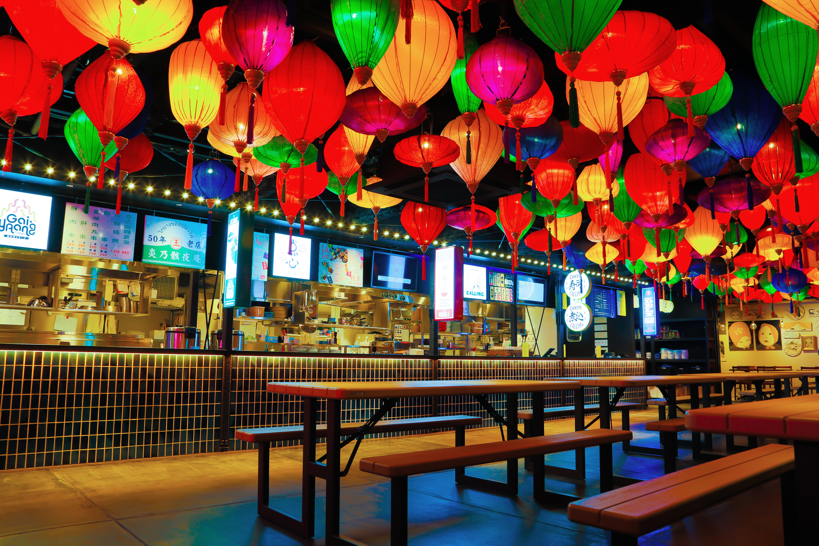 カラフルなランタンに彩られた、写真映え抜群のエリア。