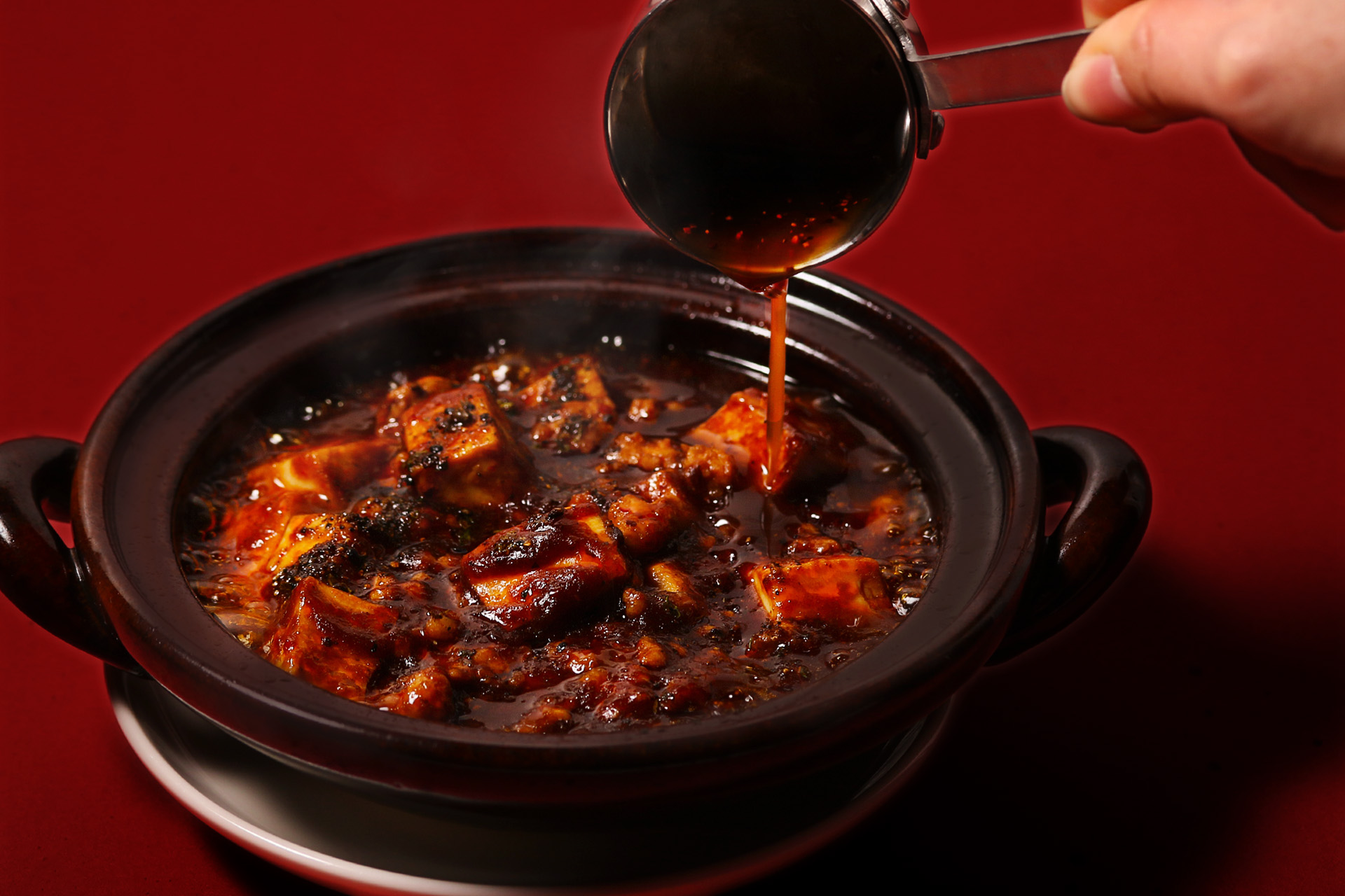 土鍋で仕上げる「黒マー油がけ土鍋麻婆豆腐」