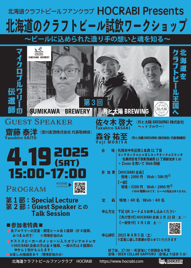 クラフトビールの魅力を深掘り! 札幌のブルワリー「SUMIKAWA BREWERY」と「月と太陽BREWING」を迎え、クラフトビールの奥深さを味わう特別なワークショップをお届けします!