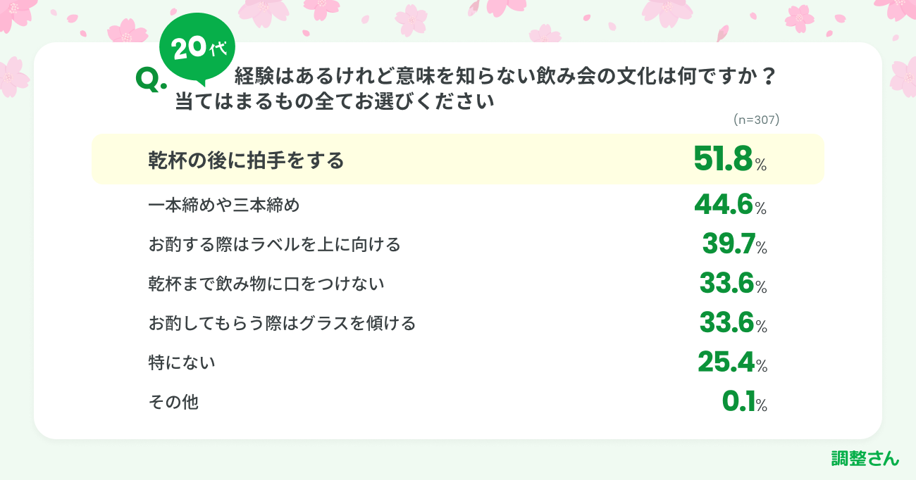 「乾杯後に拍手」20代の過半数 飲み会で経験あるも、意味は知らない