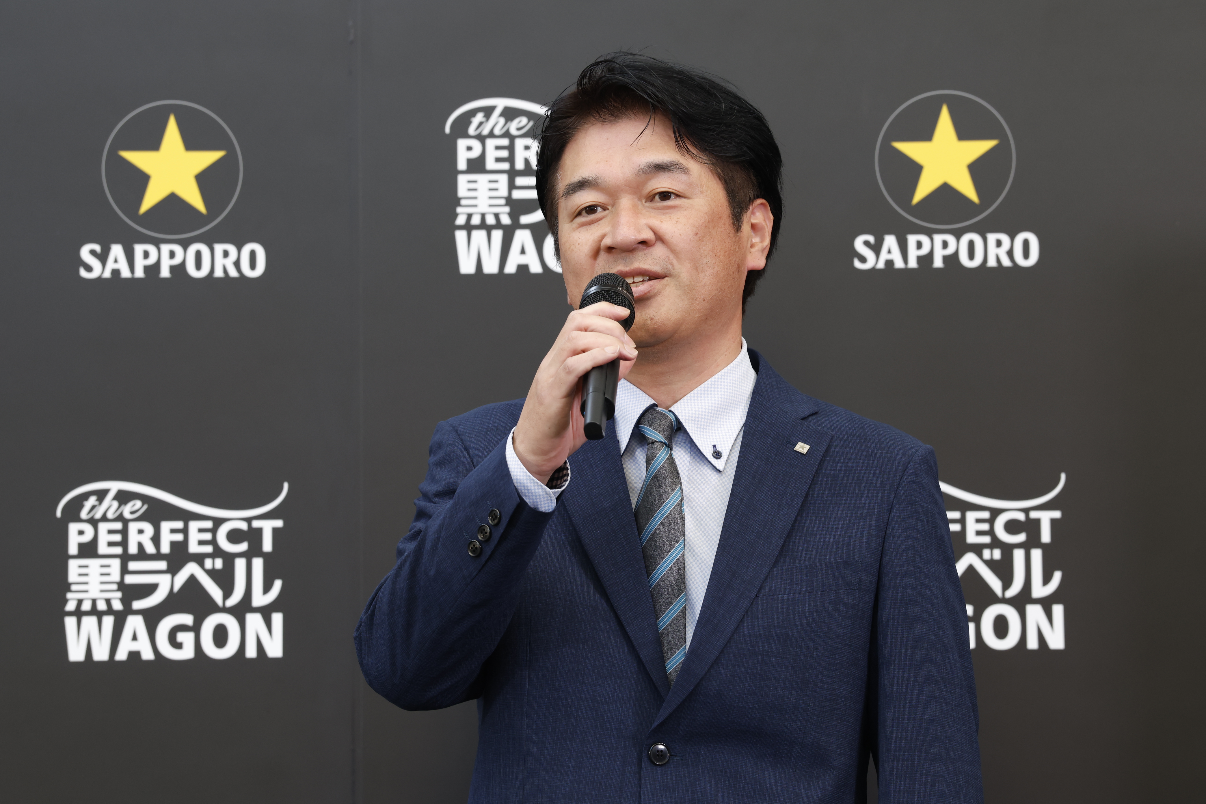 イベント冒頭には、サッポロビール(株)マーケティング本部 ビール&RTD 事業部 部長 永井敏文より、「サッポロ生ビール黒ラベル」の販売動向と「THE PERFECT 黒ラベル WAGON」開催概要等について発表。