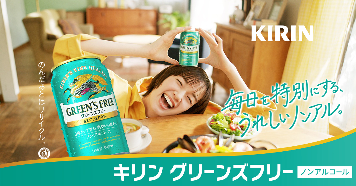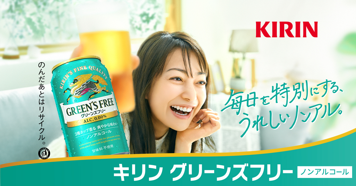 キリンビール株式会社(社長 堀口英樹)は、ノンアルコール・ビールテイスト飲料「キリン グリーンズフリー(以下、グリーンズフリー)」のイメージキャラクターとして、俳優の菅野美穂さん、佐藤栞里さんを起用した新TV-CM「うれしいノンアル」篇を4月12日(土)から全国で順次放映を開始します。