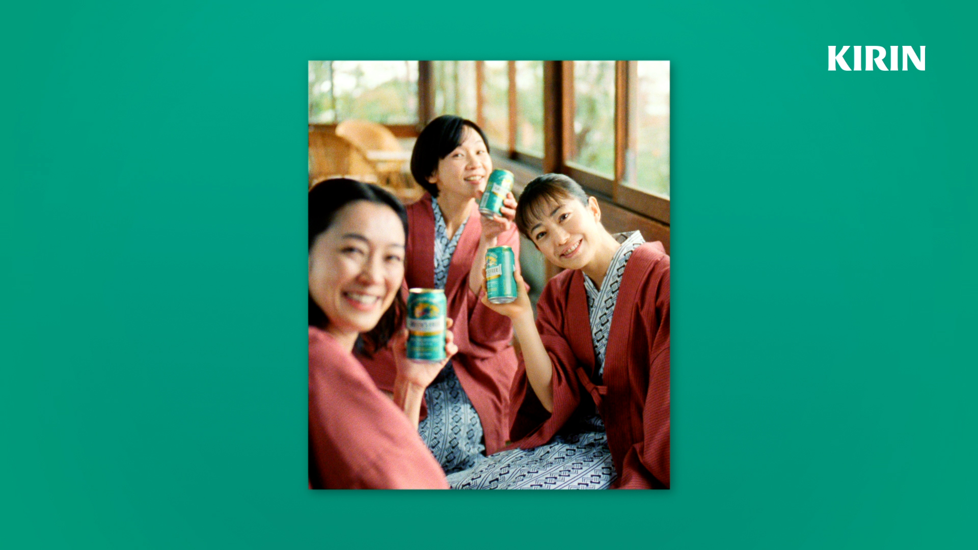 友人たちと温泉旅行中に浴衣姿で「グリーンズフリー」を楽しむ菅野さん。そこから、チキンを片手に味わっている場面やBBQを楽しむ姿、仲間とお好み焼きを焼きながら楽しむ様子も見られます。最後には「毎日をちょっと特別にする、うれしいノンアル。」というナレーションとともに自宅で「グリーンズフリー」を味わっている姿が映し出されます。それぞれの場面が思い出の1枚として写真に収められ、「グリーンズフリー」が日常に特別感を持たせることを伝えています。