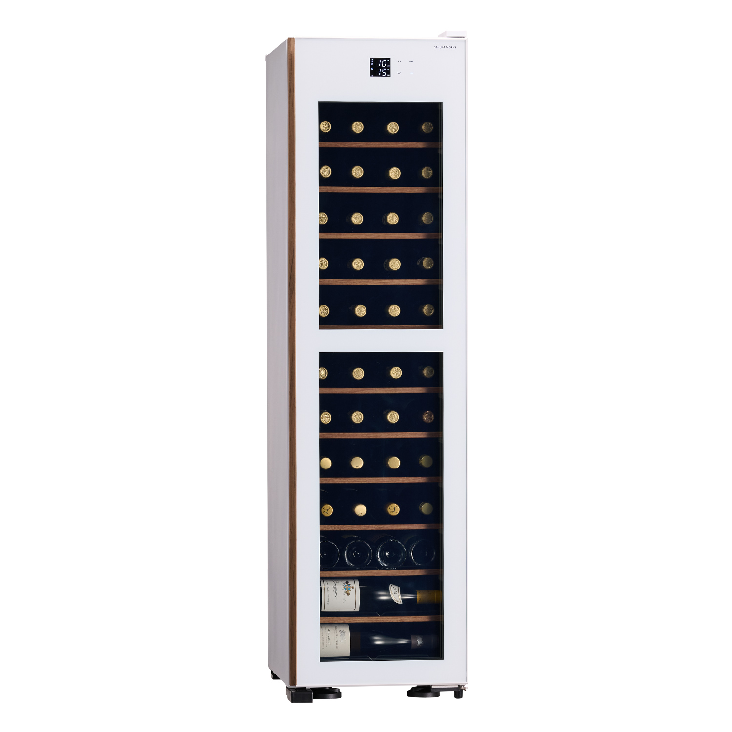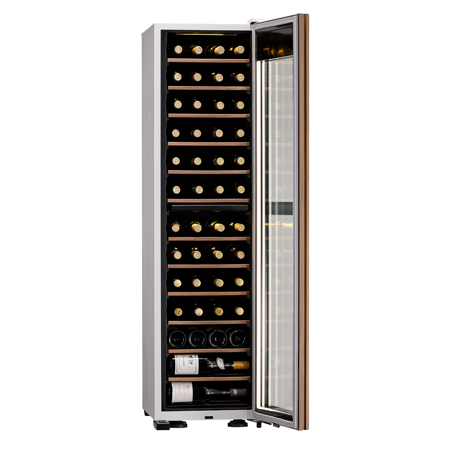 ワインセラーの顔とも言えるフロント面には、ウォールナットの木目をアクセントとして追加。スタイリッシュで上品なデザインは、インテリアや最新のキッチン家電とも相性抜群です。カラーはブラックとホワイトの2色をご用意しています。ブラックはワインのエイジングをイメージした落ち着いたデザイン、ホワイトは日本酒やビールのフレッシュさをイメージした上品なデザインに仕上げました。視覚も、空間も、美しく。セラーの「魅せる力」が進化。