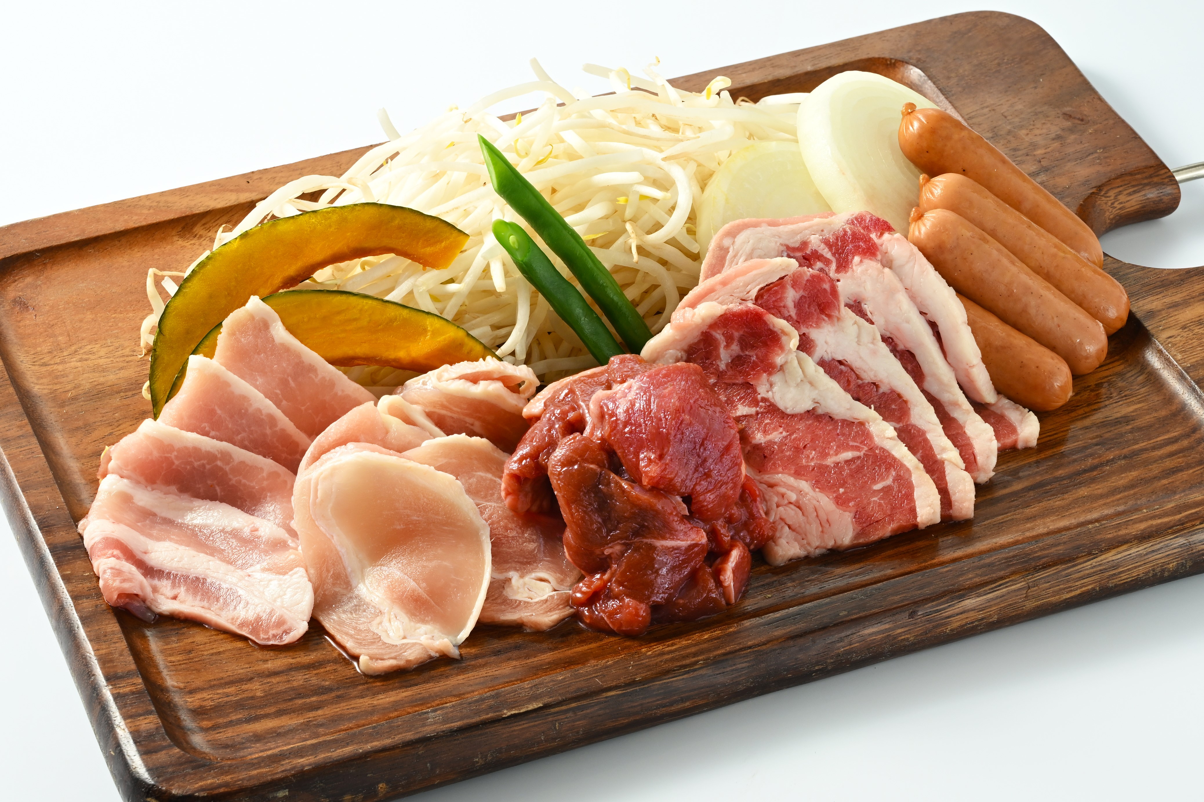 内容:特製味付けラム・牛カルビ・豚カルビ・鶏もも・ウインナー・野菜各種・ライス