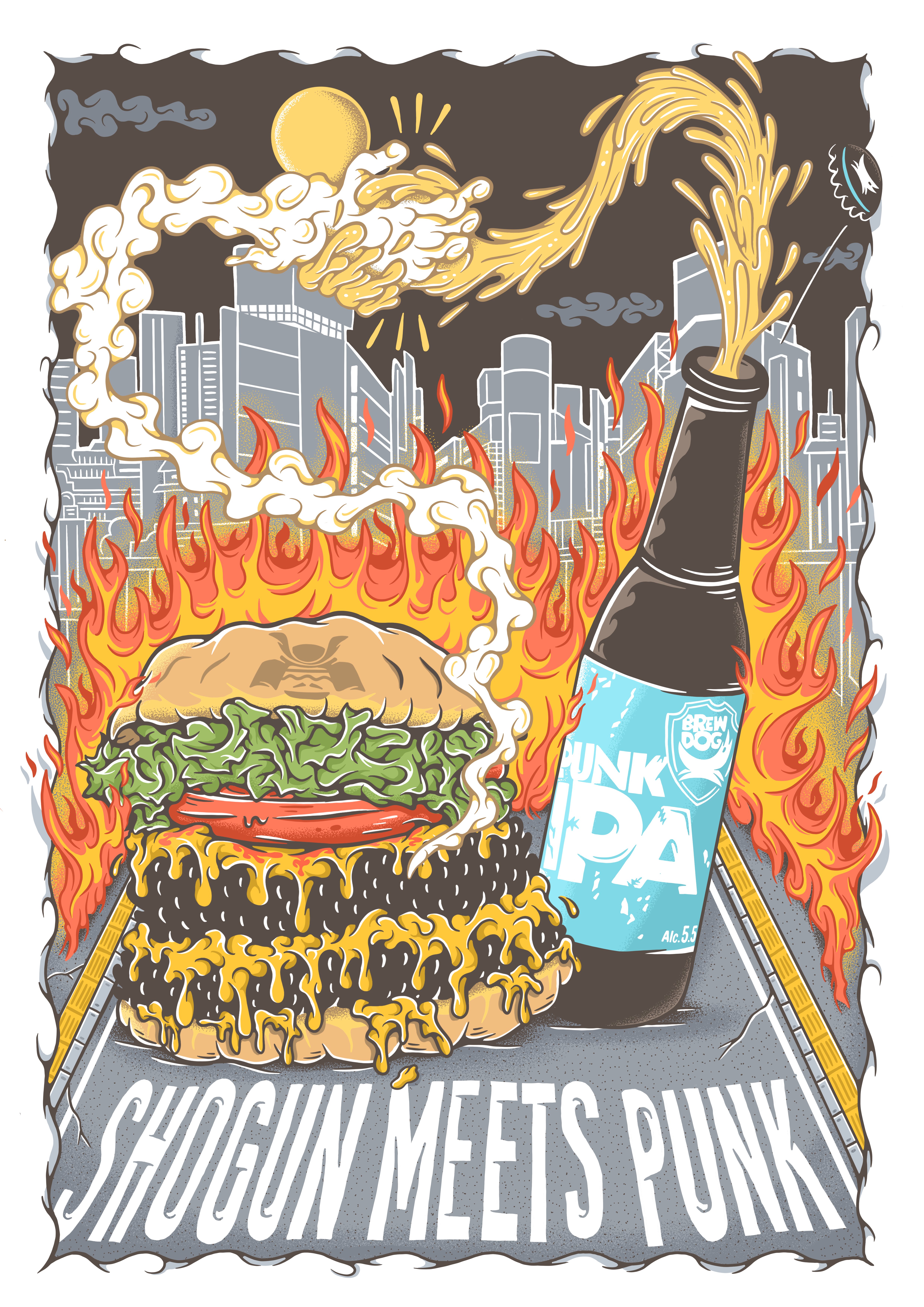 BREWDOGの象徴「PUNK IPA」と、SHOGUN BURGERの唯一無二の和牛バーガー。この組み合わせは、挑戦し続ける両者の哲学そのものを体現しています。