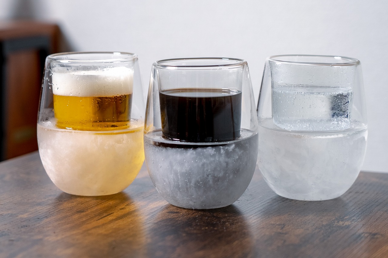 今回の「IceQuick NEO(アイスクイック ネオ)」では、マイナス18℃でも凍らない特殊冷却ジェルをボトル内に内蔵することで、水を充填する手間も無く、さらに破損リスクも無くなり、瞬時に冷却することに成功しました。開発者である代表取締役・矢島友和は「凍らない冷却ジェルを採用したことで、底蓋を無くすことができました。このアイデアにたどり着くまで2年かかりました。冷凍庫に入れても凍らない液体。キンキンに冷えたこの液体が、温度差と接触面により急速冷却に成功しました。仕事帰りのビール。最高のアイスコーヒーを味わいたい方に必見です」。