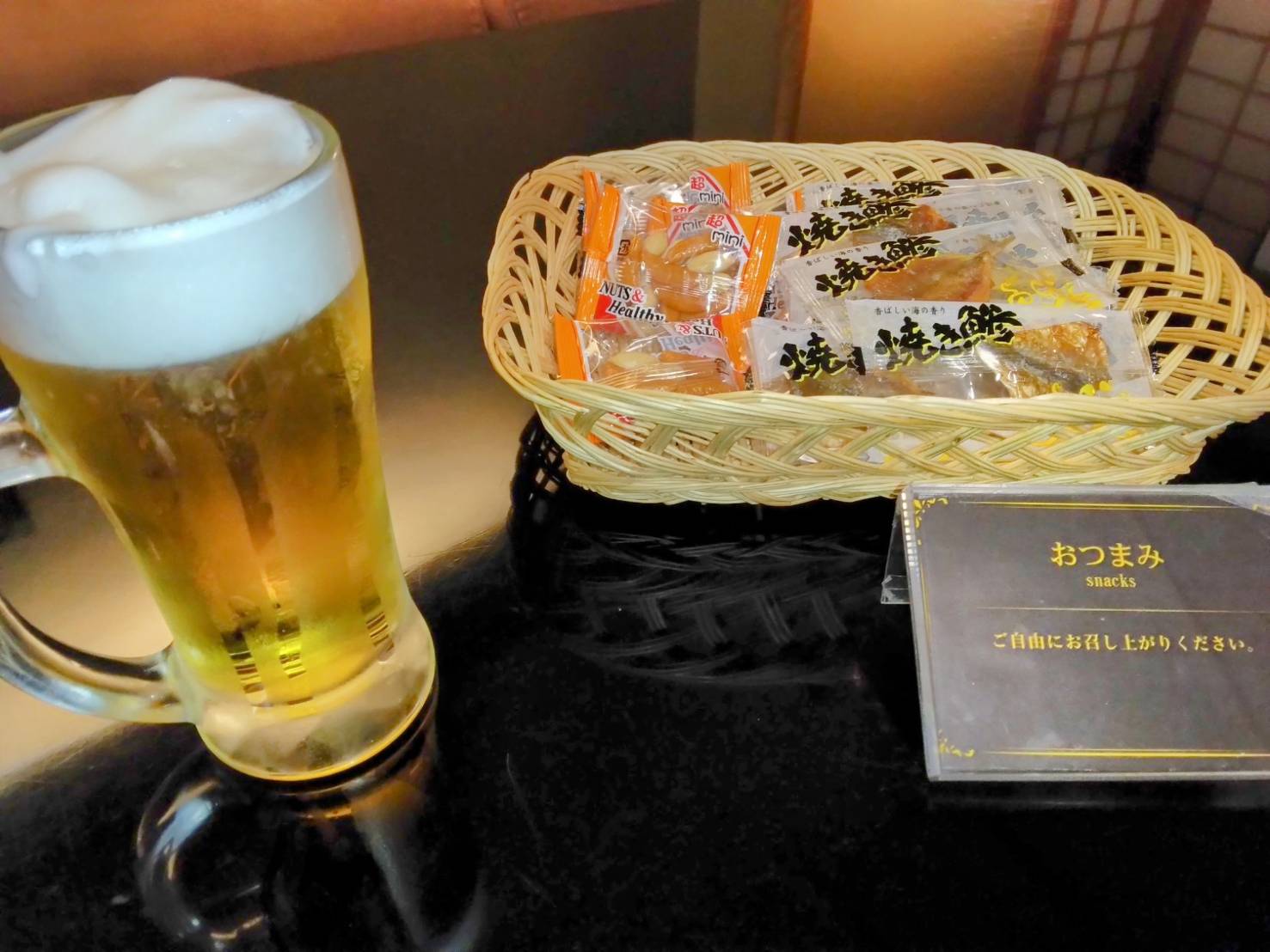 生ビールにはおつまみ各種をご一緒に用意いたします!