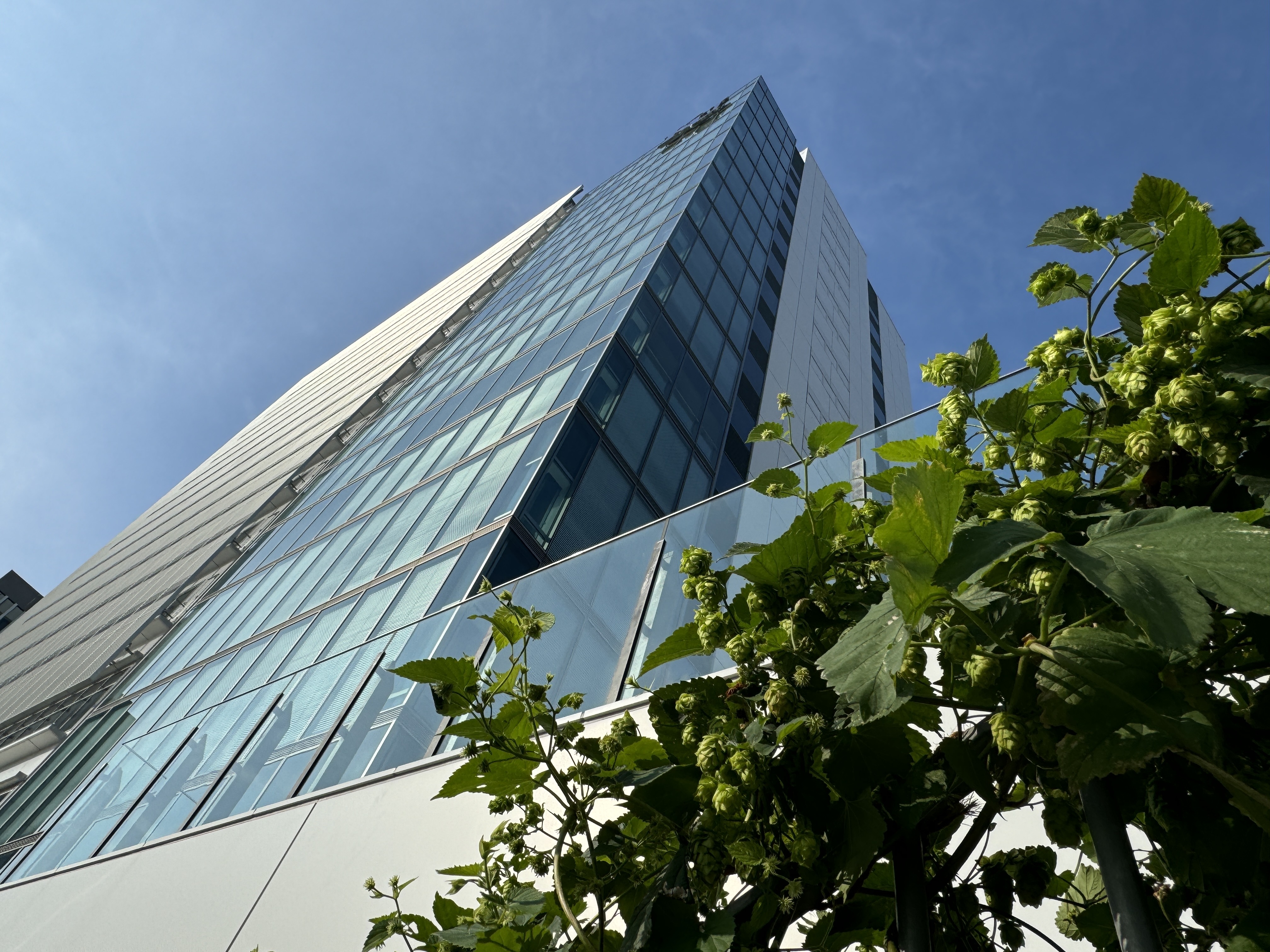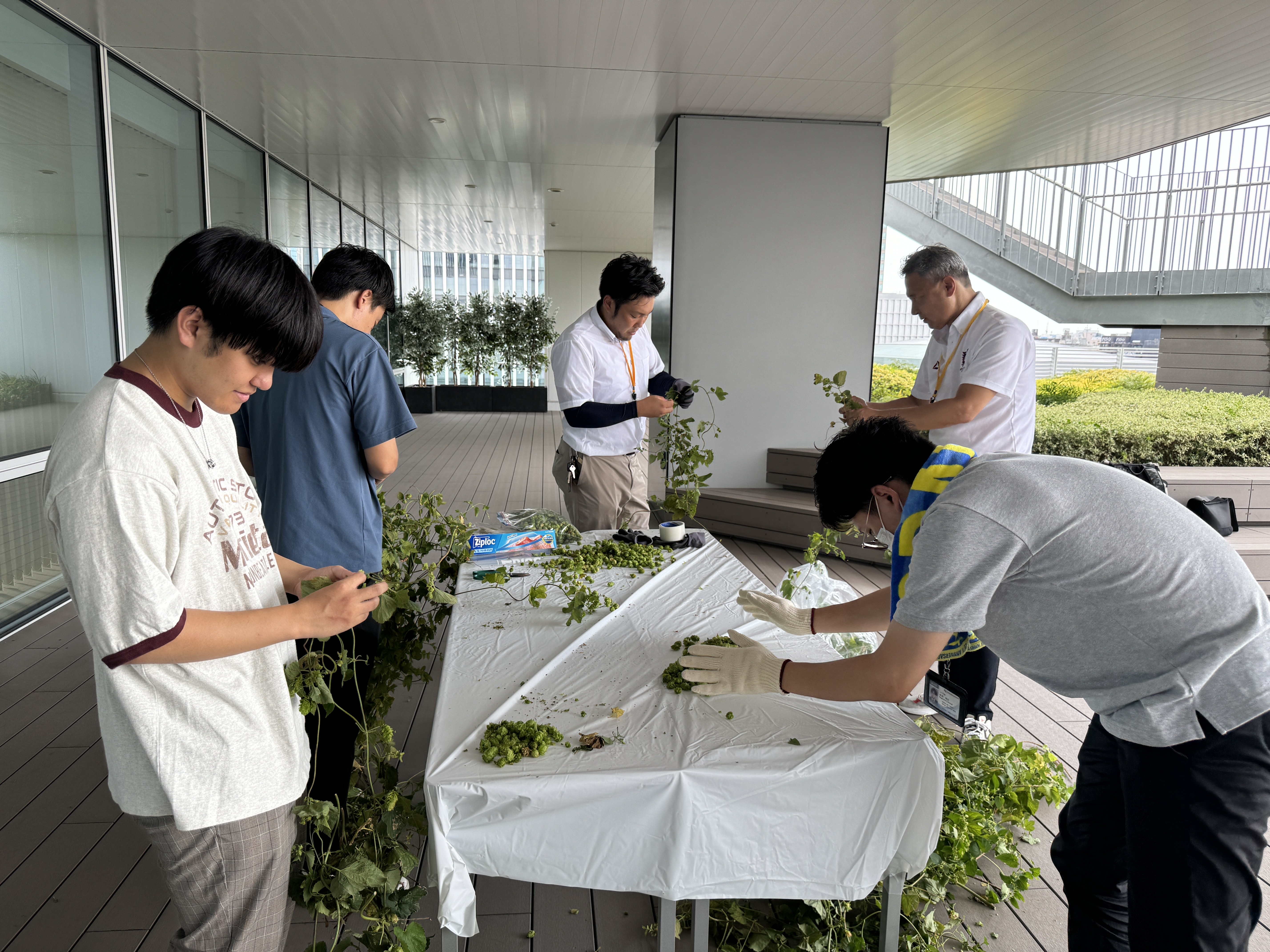 本プロジェクトは、都市型農業体験の創出と地域活性を目指す産学連携の取り組みです。2021年度、みなとみらい地区のビジネスエコシステム形成を促す「MINATOMIRAI 21 Activation Program」に採択され、スタートアップ企業・株式会社Rootと連携して神奈川大学の横浜・みなとみらい両キャンパスでホップ栽培を開始。学生たちが自らの手で育てたホップが、2024年度は2種のオリジナルクラフトビールとして完成しました。