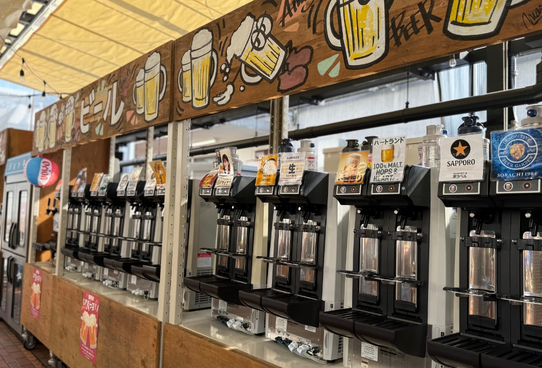 6社15種類のビールが飲み放題、100種類以上の豊富な食べ飲み放題メニューは