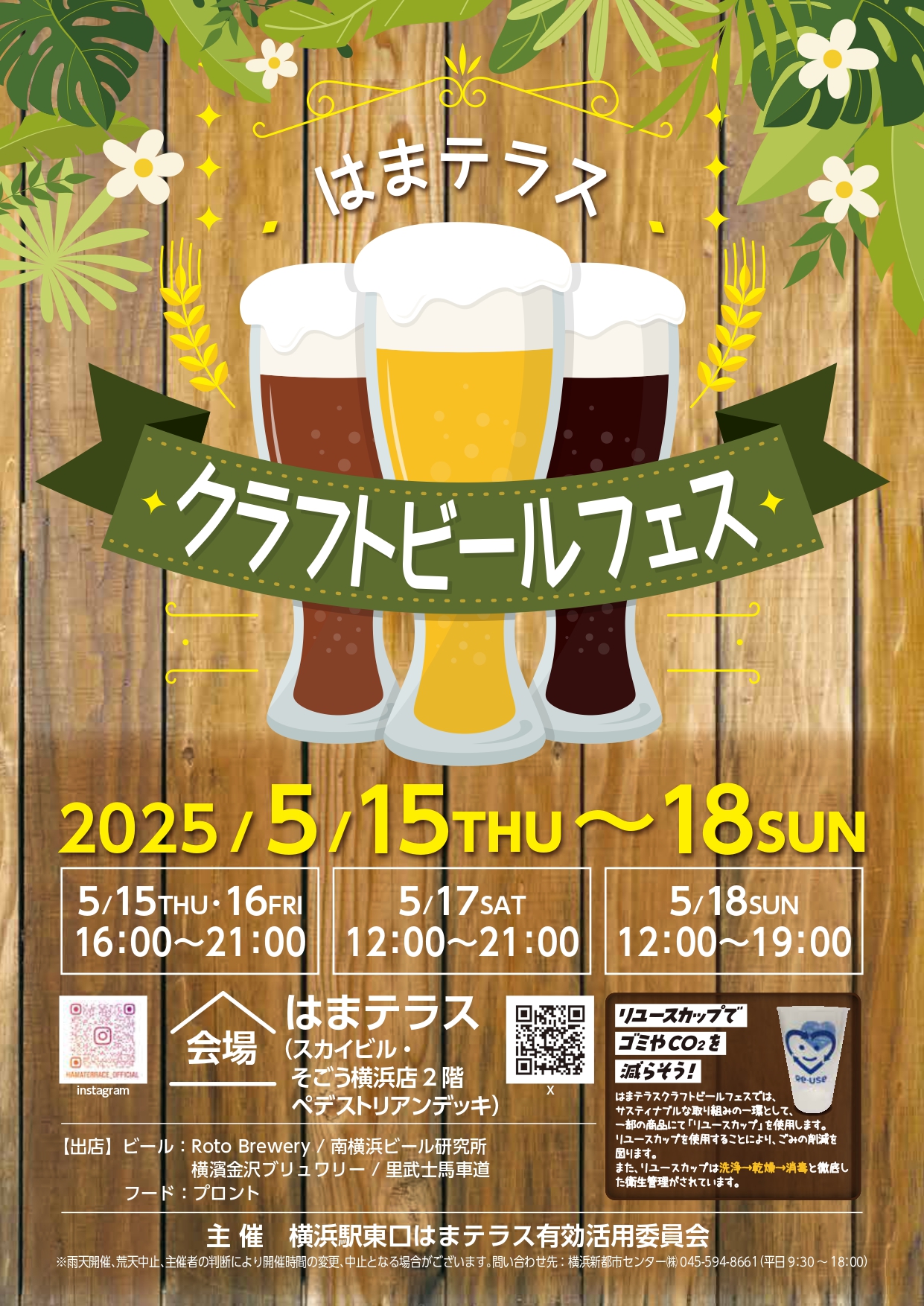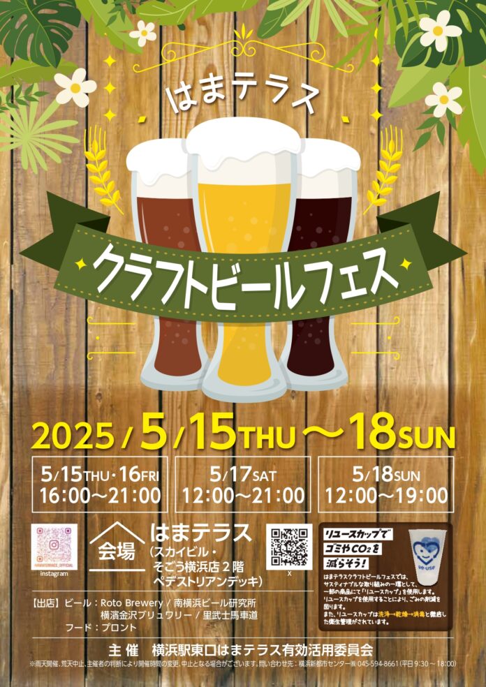 横浜駅東口はまテラス有効活用委員会(横浜駅東口に所在する企業4社が加盟)は、2025年5月15日から5月18日の4日間、「はまテラス」にて「クラフトビールフェス」を開催いたします。本イベントは、神奈川県の地元ブルワリーを集めたビールフェスとして、様々なクラフトビールが楽しめるイベントです。
