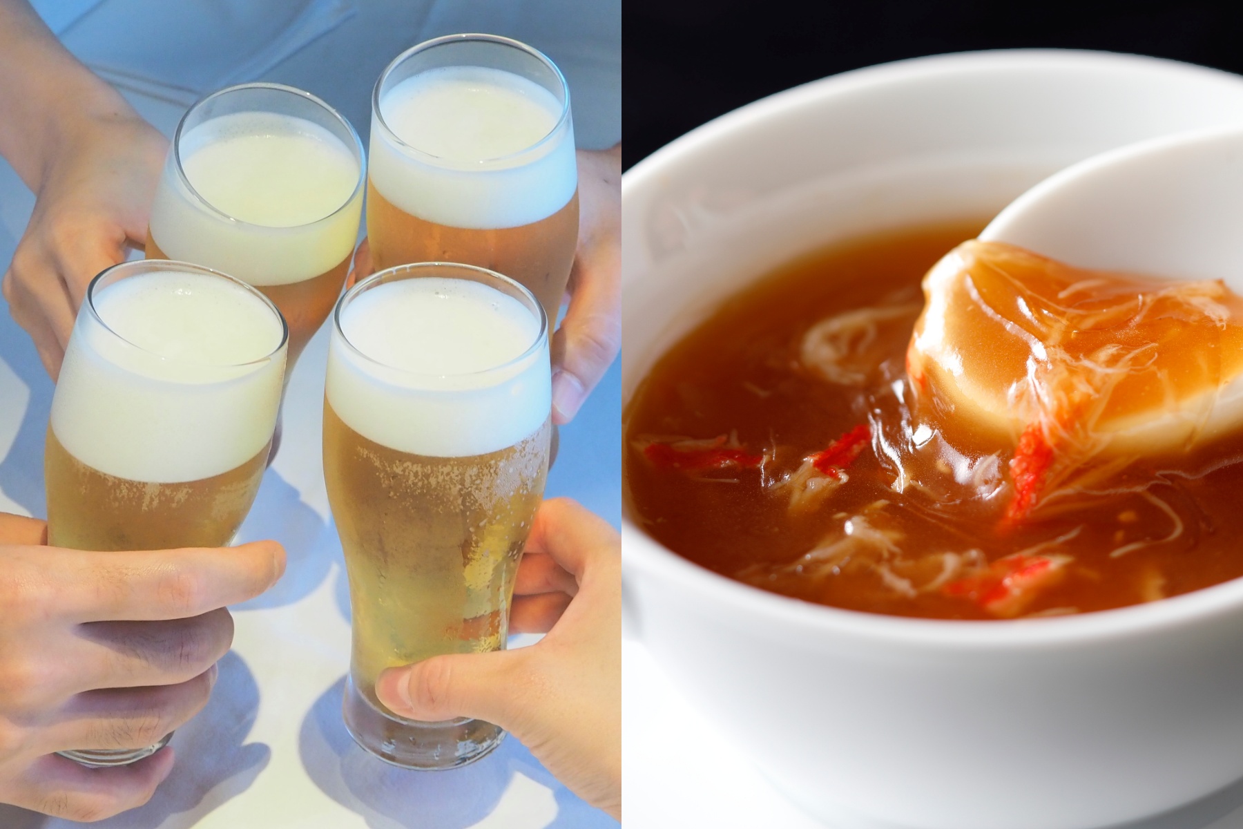 同僚との親睦を深める会や、お仕事から離れた、親しいご家族・ご友人との気分転換の機会に、ホテルニューオータニ(東京)の中国料理「大観苑」では、乾杯ドリンク付きご優待ディナーをご用意しました。お食事のスタートに、生ビールまたはノンアルコールスパークリングワイン1杯をプレゼント。1日頑張った自分へのご褒美に、お得なドリンクサービスが、ディナータイムのひとときを盛り上げます。