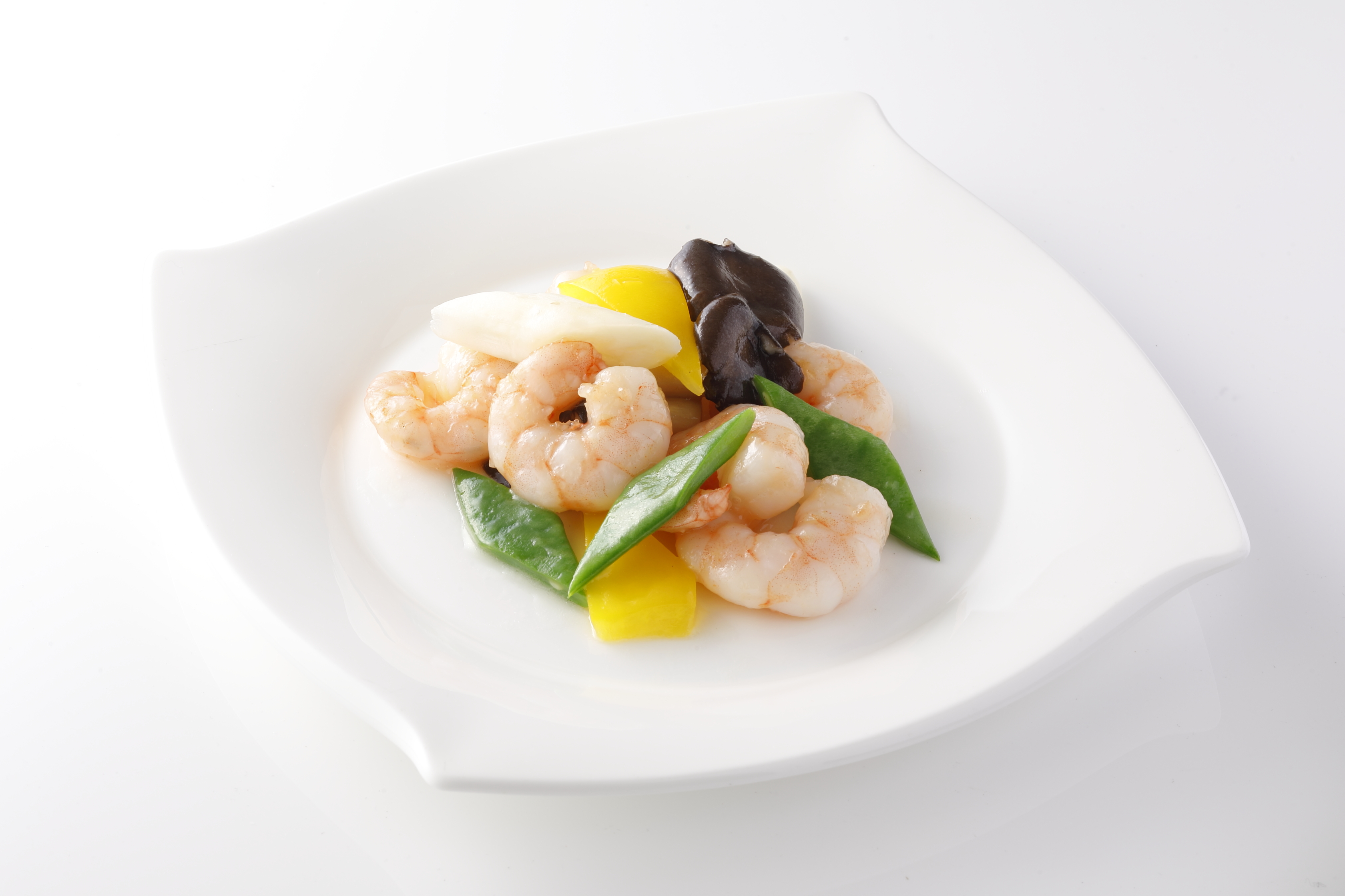 「海老のあっさり炒め」は、ぷりぷりとした海老の食感が際立つ一品。野菜の歯ごたえも軽やかで、豊富な品数のディナーコースも重くなりすぎず、ぺろりとお召し上がりいただくことが出来ます。