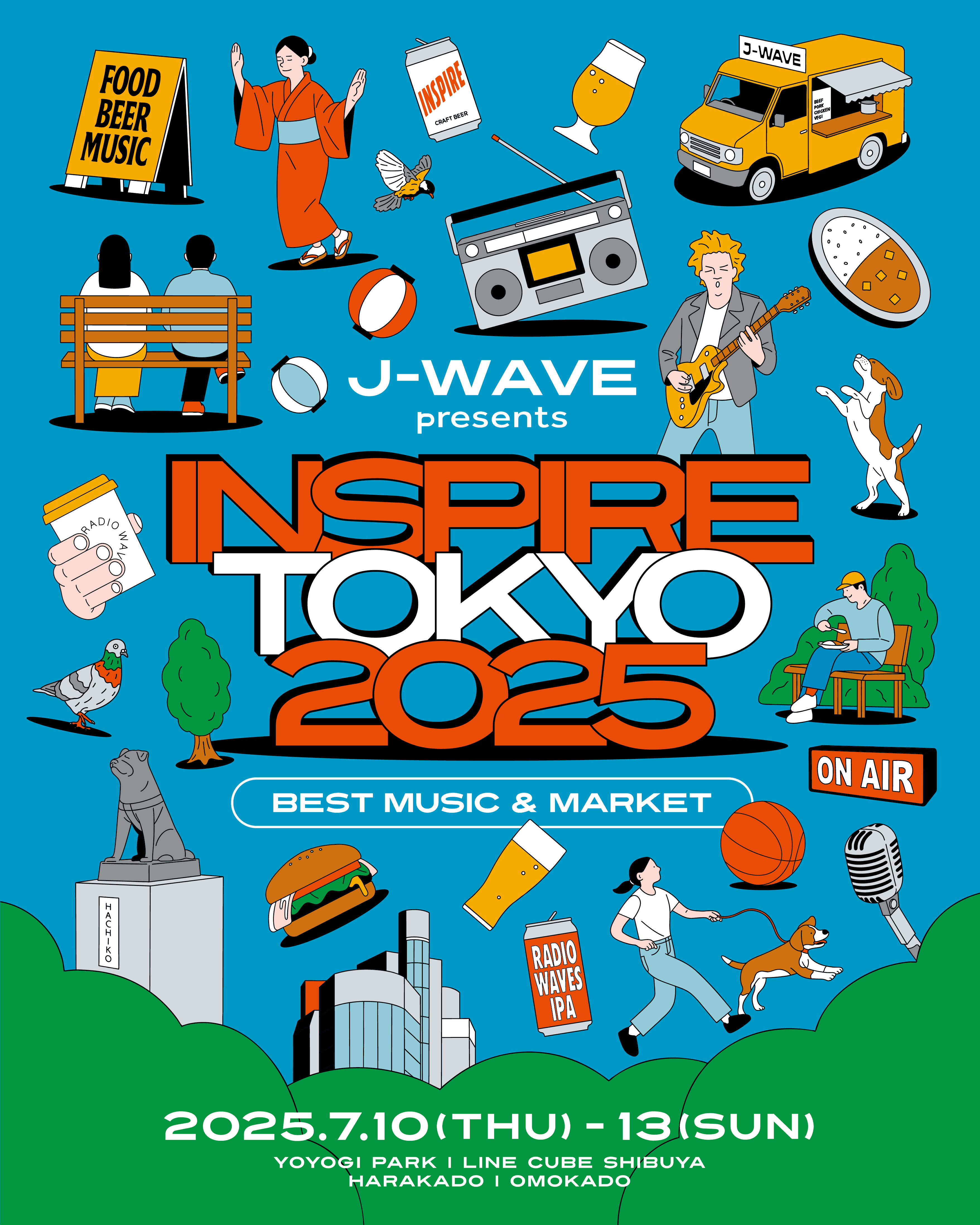 ラジオ局J-WAVE(81.3FM)は、7月10日(木)、11日(金)、12日(土)、13日(日)の4日間、音楽とマーケットを融合した都市型カルチャー・フェス「J-WAVE presents INSPIRE TOKYO 2025 -Best Music & Market-」(以下、INSPIRE TOKYO 2025)を代々木公園イベント広場・ケヤキ並木と、LINE CUBE SHIBUYA、東急プラザ原宿「ハラカド」、東急プラザ表参道「オモカド」で開催いたします。