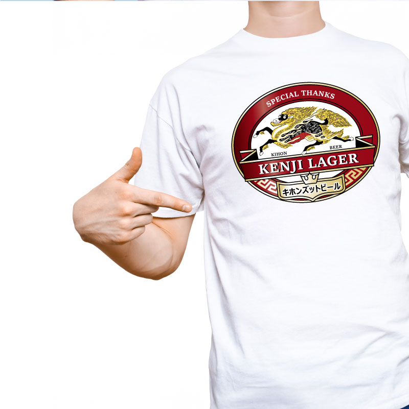 新デザインは、誰もが一度は見たことのあるビール銘柄をモチーフに構成されており、「あれ?これって…?」と会話のきっかけにもなりそうなユーモアが特徴。遊び心を込めつつ、程よいデザインバランスで、普段使いしやすいTシャツに仕上げられています。