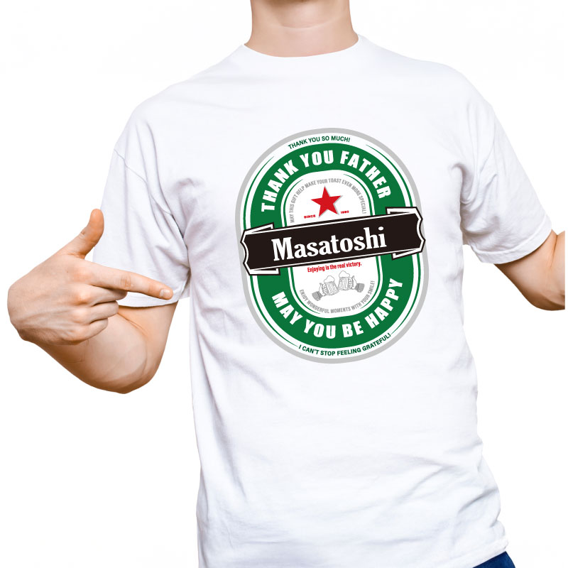 デザインの中に、お父さんの名前やニックネームを入れることができ、世界にひとつだけの“オリジナルTシャツ”として贈れます。