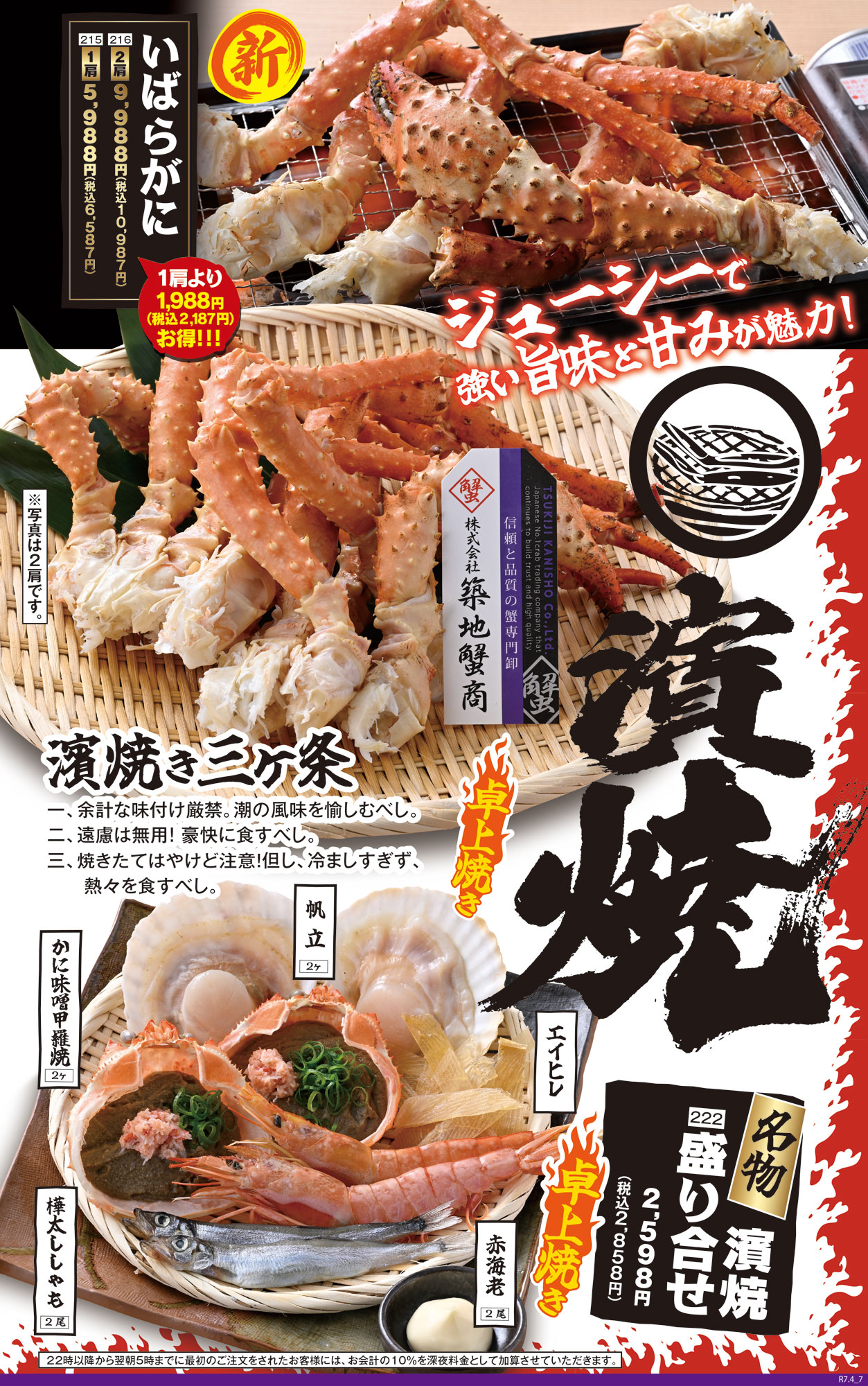 「目利きの銀次」は、お客様ご自身が卓上で焼く“濱焼”や豪快な漁師料理と全国の美味しいお酒が楽しめる海鮮系の大衆居酒屋です。