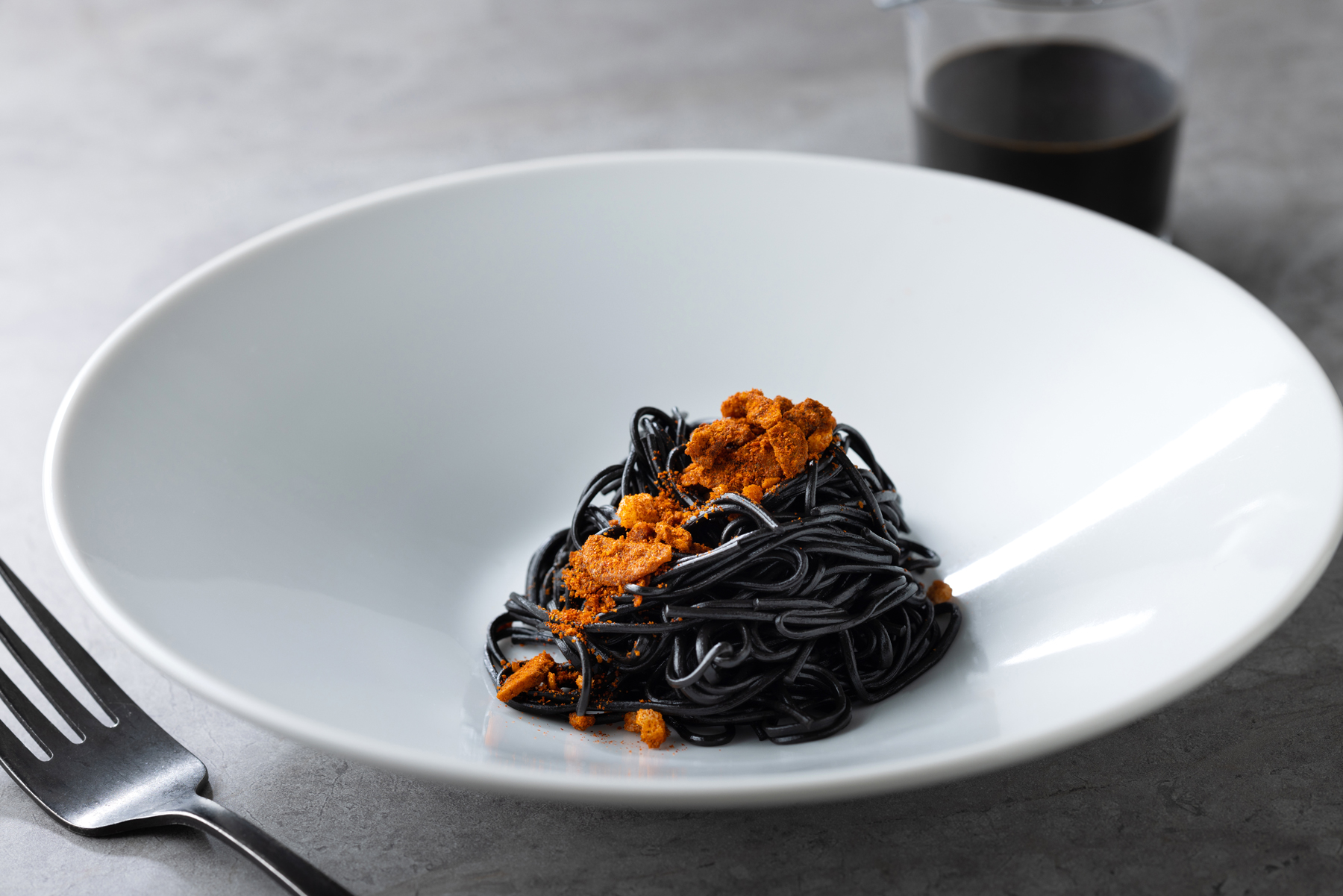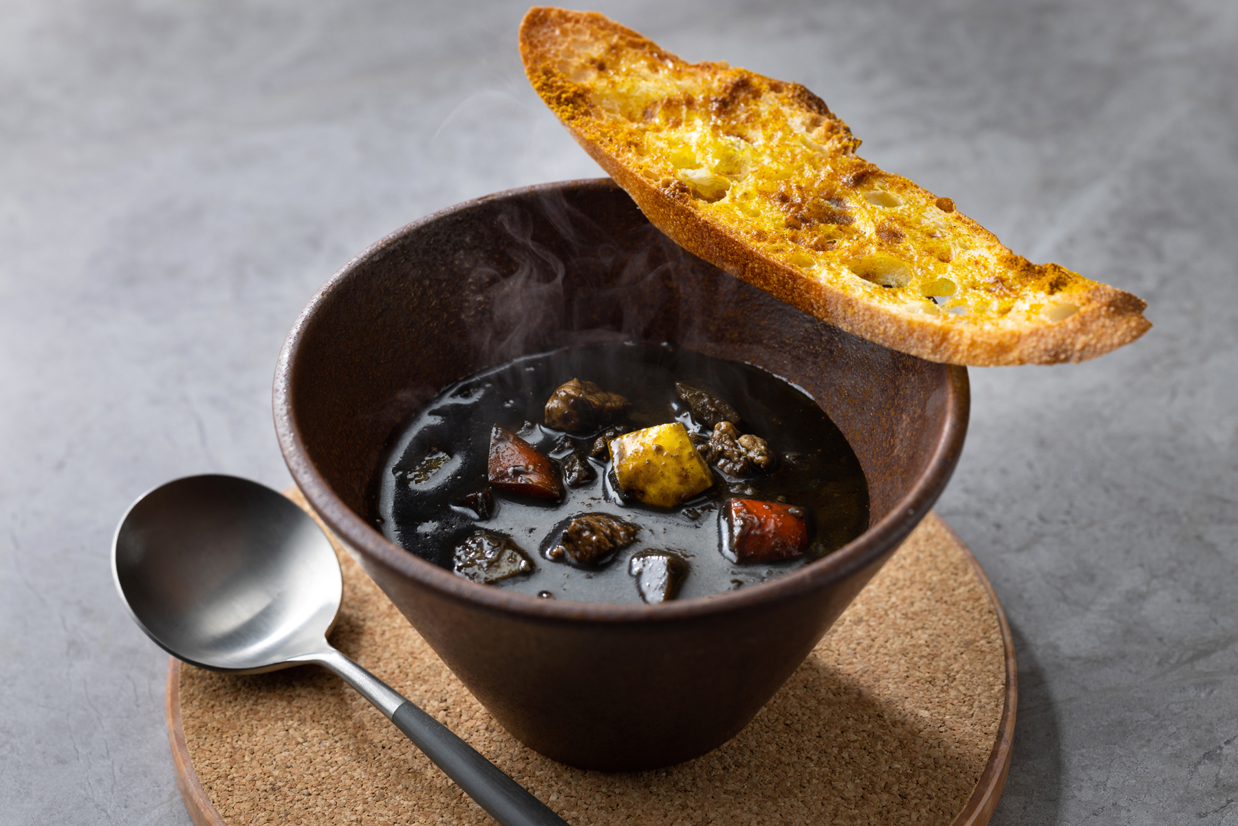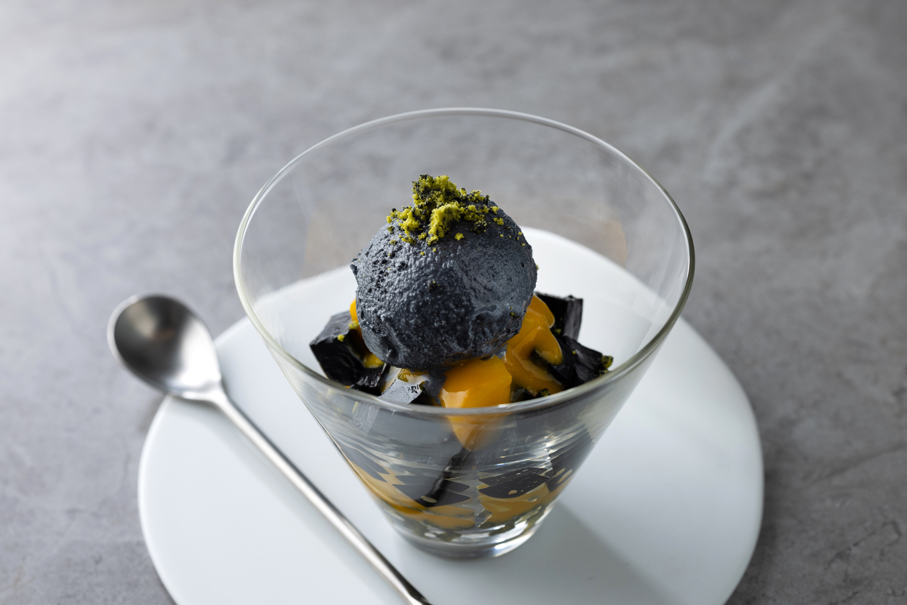今回は、日本の家庭料理とアメリカン料理を融合した料理に、スパイスを組み込みました。見た目は黒で統一し、ご提供いたします。黒で統一したのは、料理において黒という色が、シンプルながらも見る人に強い印象を与え、探求心を刺激するのではないかと考えたからです。黒を基調に、一色の差し色を添えた独創的な料理で、皆さまの想像力を刺激します。暑さで食欲が減退しがちな夏だからこそ、料理にワクワク感、見た目の驚き、口にした時の発見が、食欲を呼び覚ますのではないかと思っています。ぜひ、この夏の食体験をお楽しみください。