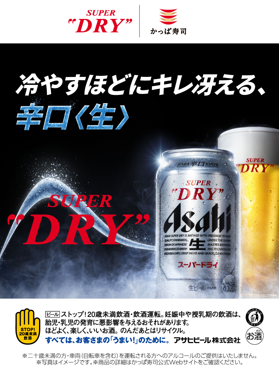 LD認定店」制度をスタート。かっぱ寿司の101店舗もその認定を受け、“冷え”にこだわって提供するスーパードライをお楽しみいただけるようになりました。