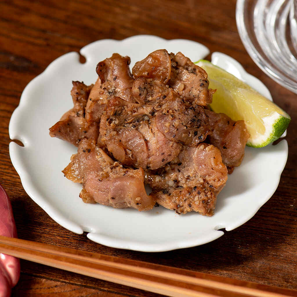 徳島県が誇るブランド鶏「阿波尾鶏」の砂肝を贅沢に使用した、旨みたっぷりの逸品です。しっかりとした歯ごたえが特徴で、噛むたびにじんわりと広がる濃厚な旨みが、食欲をそそります。シンプルながらも奥深い味わいは、お酒との相性も抜群。ひと口食べればクセになること間違いなしの、酒場の人気メニューです。