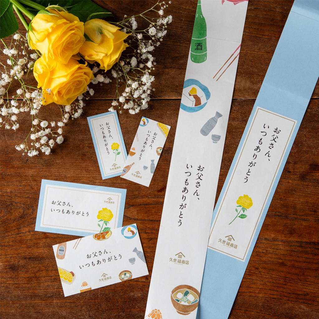 『久世福の「うまい」を贈ろう父の日』フェア期間中は、父の日限定のカードやシール、帯のしをご用意!(無料)