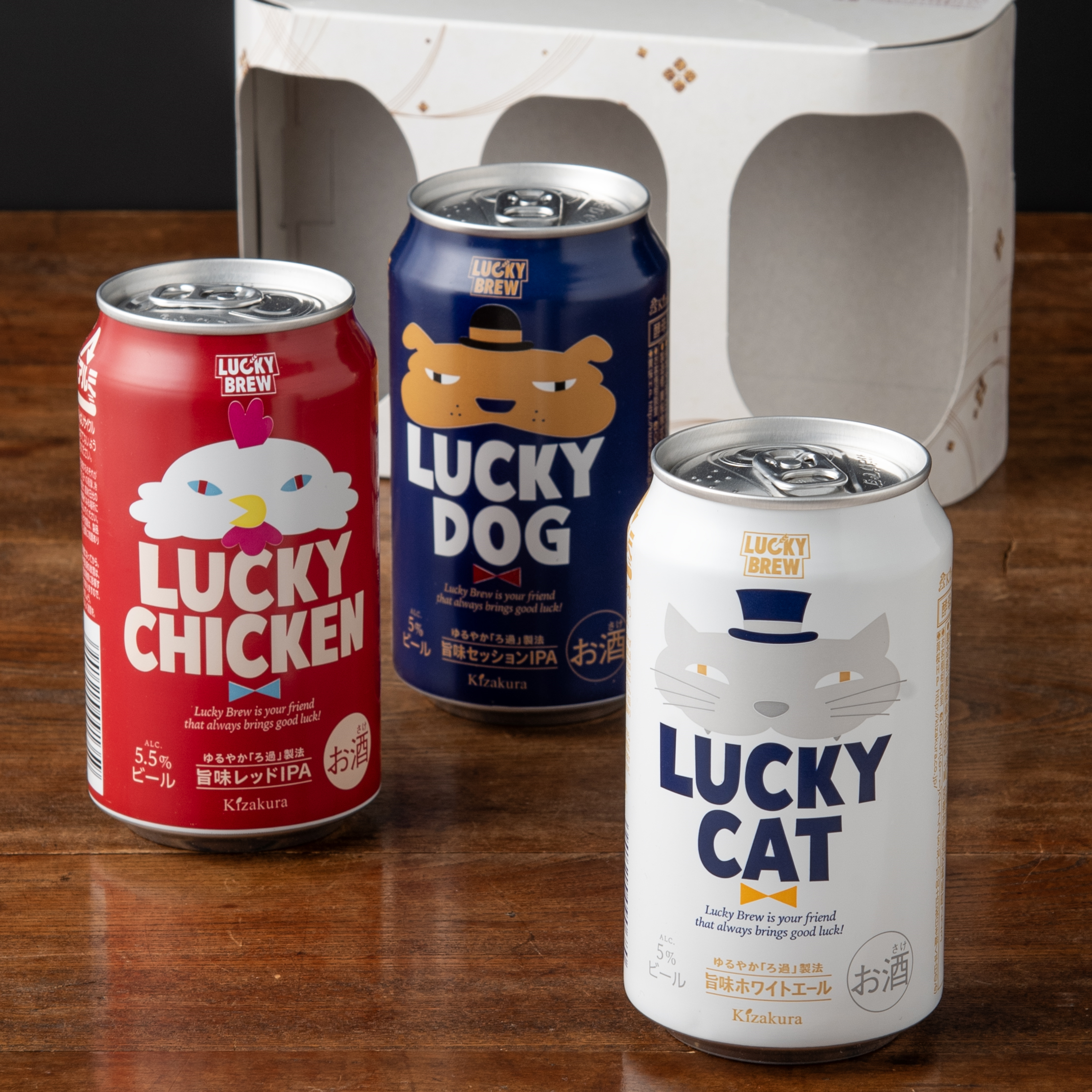 軽やかな飲み口に、柚子の香りと和山椒のアクセントが爽やかに広がる「LUCKY CAT」、トロピカルな香りとしっかりした苦味でチキン料理と相性抜群な「LUCKY CHICKEN」、シトラホップの柑橘系の香りとシャープな苦味が特徴の「LUCKY DOG」をお楽しみいただけます。