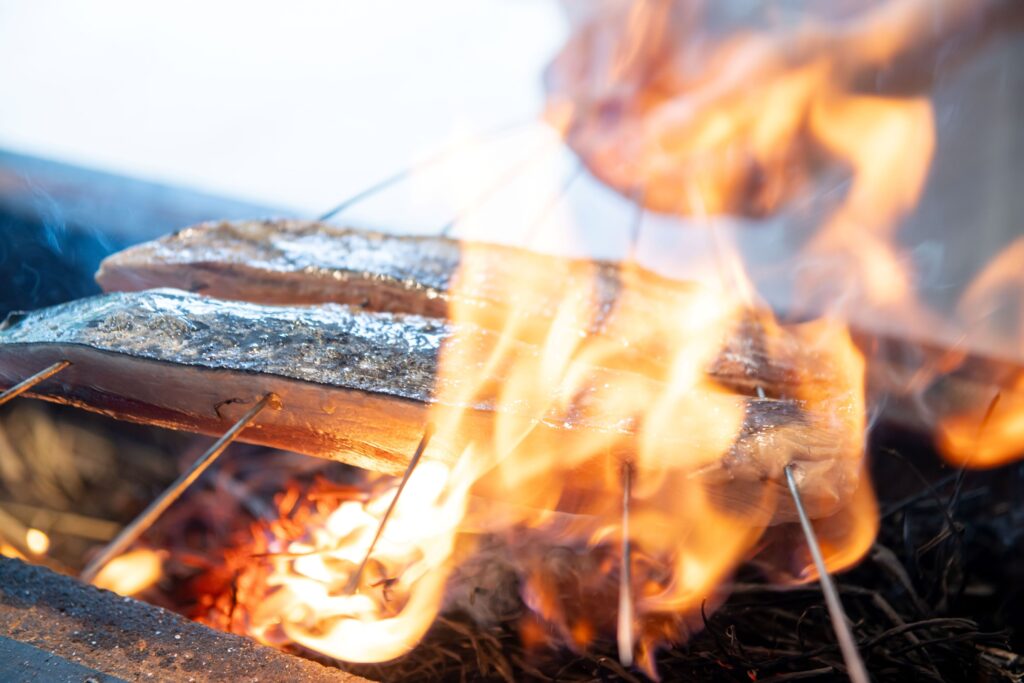 週末は、目の前で焼かれる鮎の塩焼きや鰹の藁焼きなどの演出料理も登場します。
