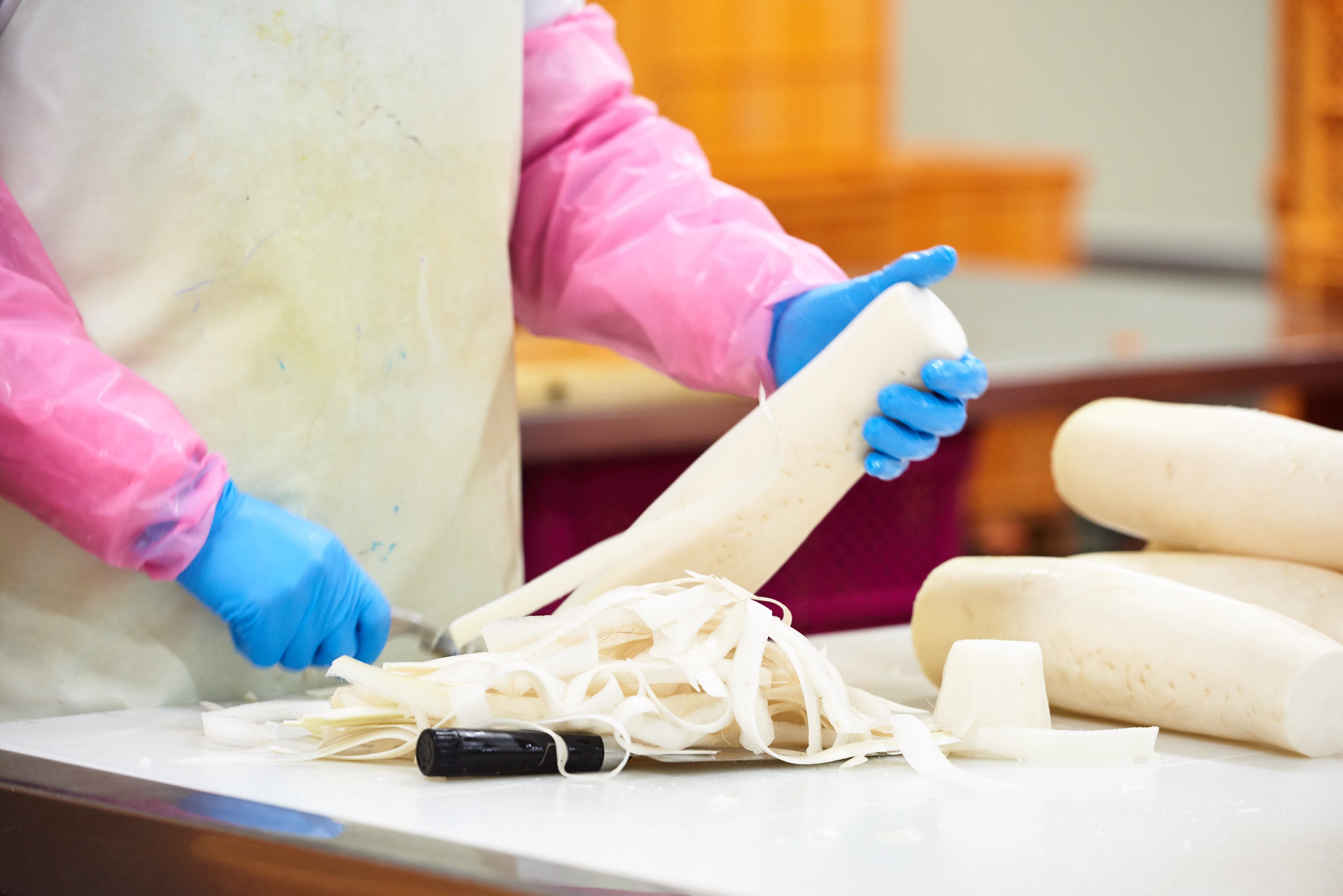 調達先で年間10,000t以上発生している野菜残渣。銀座ライオン(一部店舗を除く)では、野菜残渣のなかで普段食べずに捨てられている野菜の皮や葉、芯、根を有効活用して作られた、サステナブルな「ベジブロード(注3)」を使用したスープを提供しています。