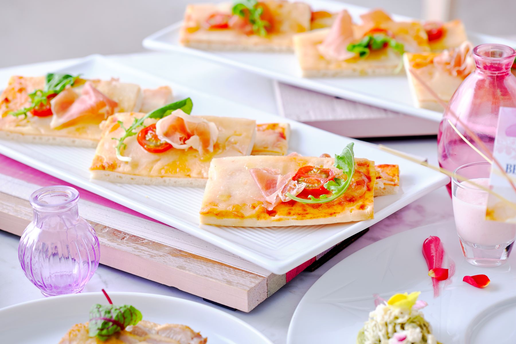 さらに、フレッシュなトマト、バジル、チーズの素材を活かしたマルゲリータピザや、ビールをさらに進めるポテトチップスなど、ヒューガルデン ロゼビールとのペアリングを意識した料理を軸として、食べ応えにもこだわった贅沢なビアプランに仕上げました。