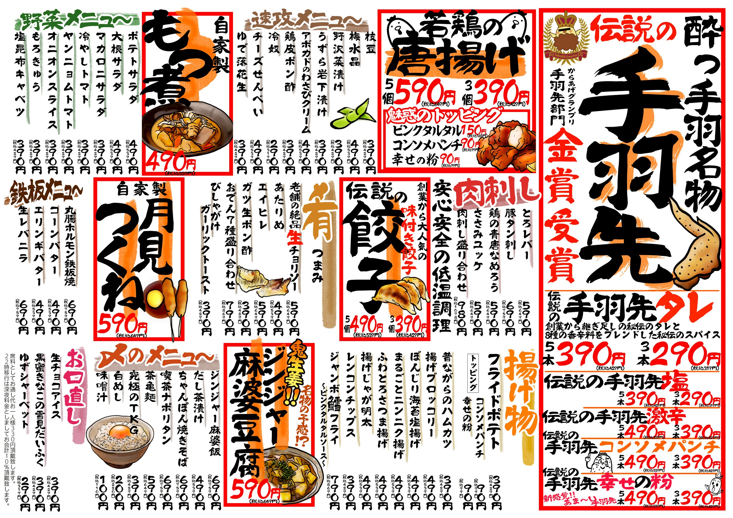居酒屋革命 酔っ手羽 飲み放題メニュー