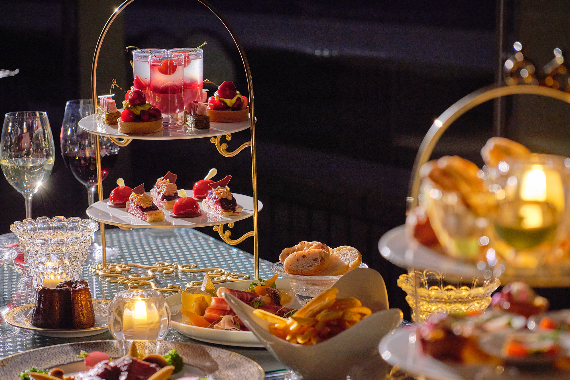 「パーティープラン」は、ルーフトップテラスもしくはダイニング内のお席にて、N.Y.グリルフレンチをコース仕立てで大皿スタイルにて提供いたします。7品のオードブルをハイティースタイルで楽しめる「ジュエリーオードブル」をはじめ、魚料理と肉料理のメインディッシュ、デザートが付いたゴールドプラン、さらにトリュフやオマールエビ、アンガス牛ロースのグリエ、アフタヌーンティースタイルデザートへアップグレードされたプラチナプランの2種をお届け。ドリンクはボトルワインを1本お選びいただけるほか、シャンパンもしくはスパークリングワインを含む150分間のフリーフロープランもご用意いたしました。シーンや気分に合わせて、華やかな夏のナイトタイムを演出いたします。