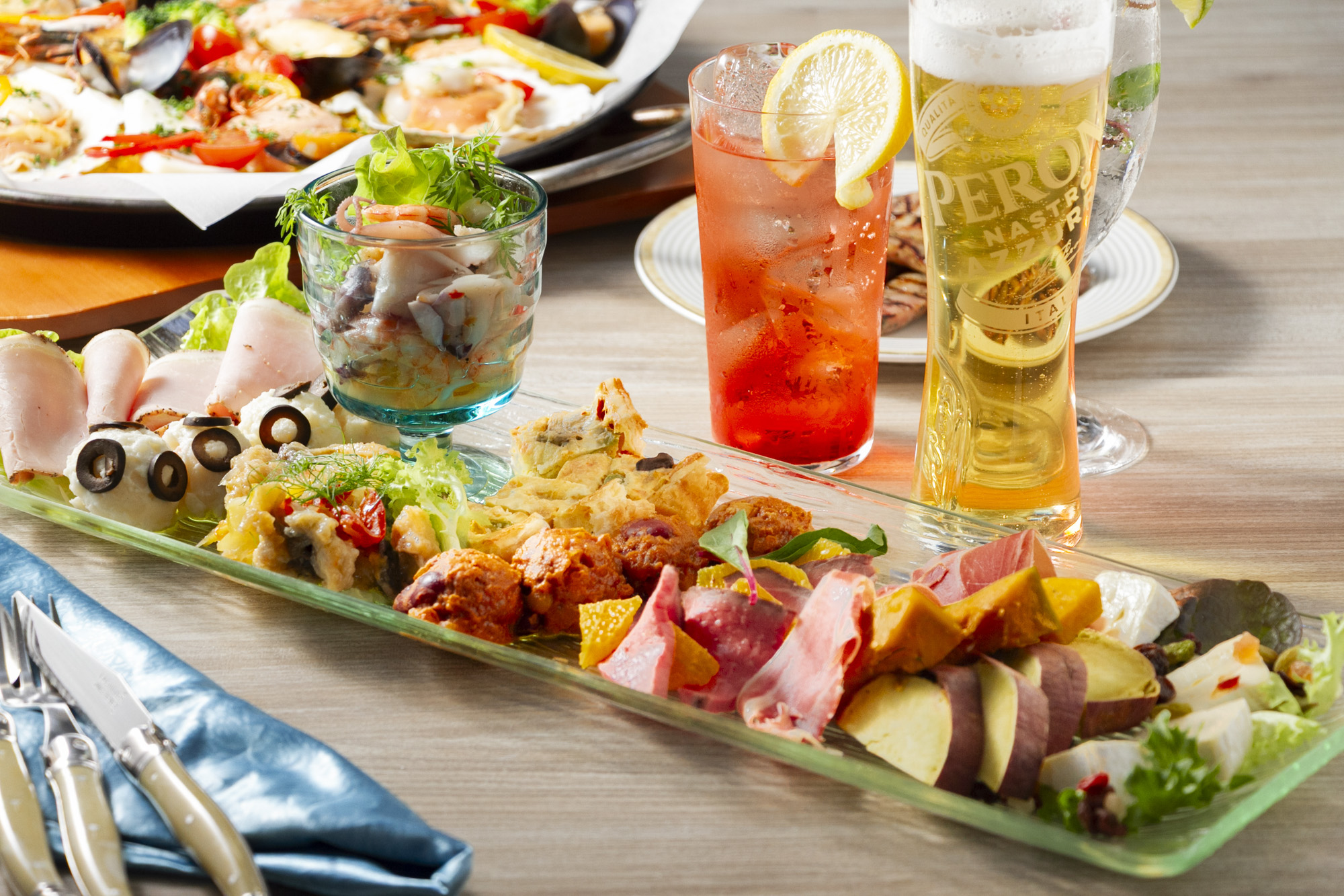 全プランフリードリンク付、イタリアンプレミアムビール「PERONI」やイタリアの伝統的なレモンリキュール「リモンチェッロ」は爽快な酸味と程よい甘さが、夏の夜を優雅に演出する事間違いなし!その他ワインやカクテル等を含み全30種類以上のラインナップで思う存分ご堪能いただけます。