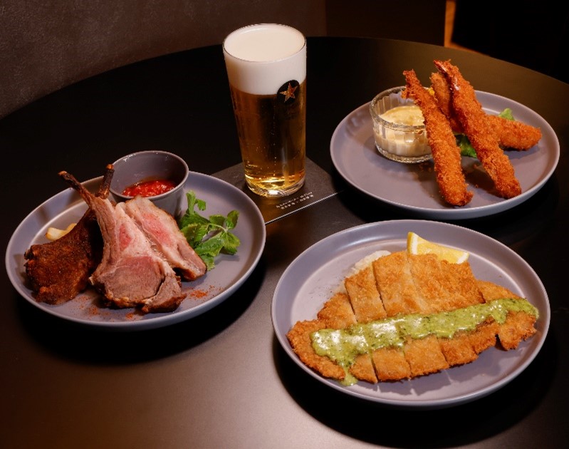 独自の世界観の中で、生のうまさとCM登場の料理をモチーフにしたおつまみが楽しめる