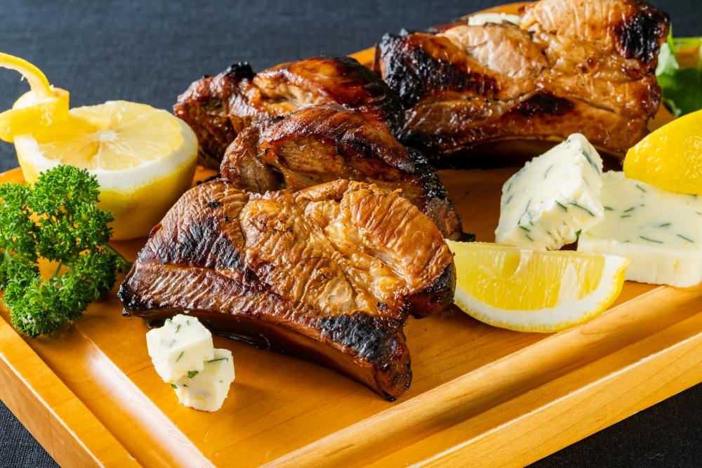 直火で焼いたラサンテポークは、表面はカリッと香ばしく、中はしっとり柔らかい食感が特徴。山椒のピリっとしたアクセントが味わいをさらに引き立て、やみつきになること間違いなしの一品です。