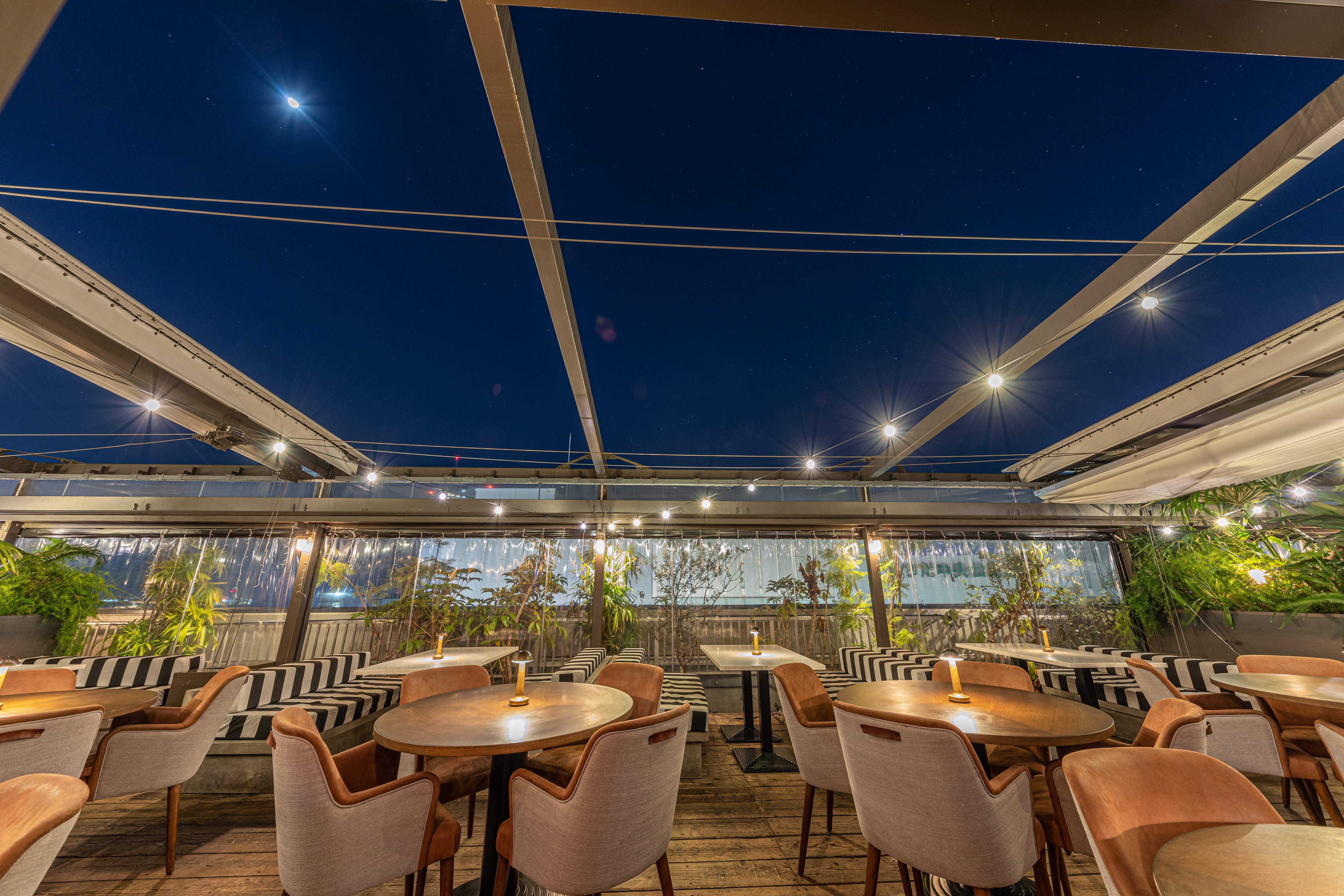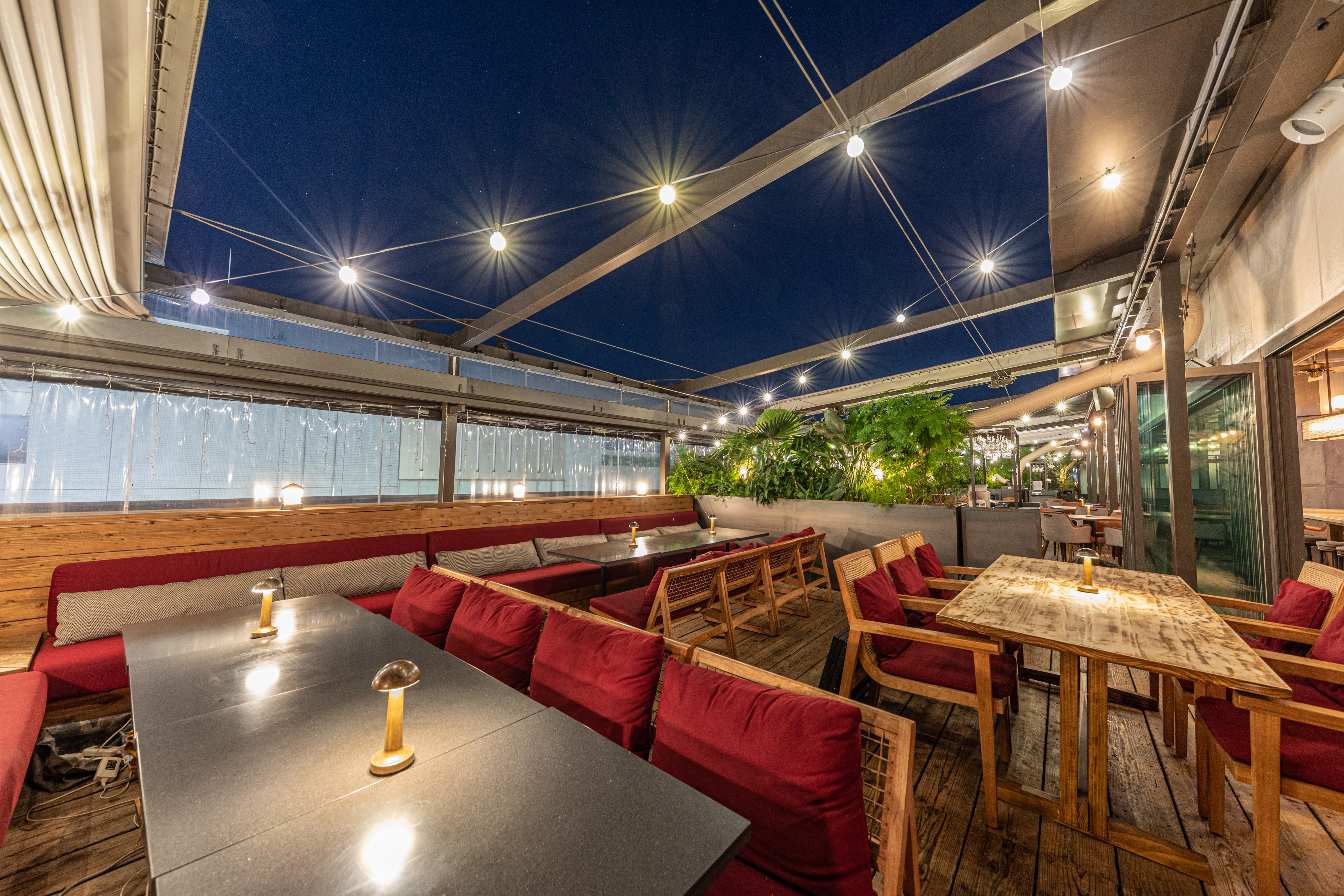 中心街の商業ビルの最上階の8階に位置するルーフトップダイニングレストランです。