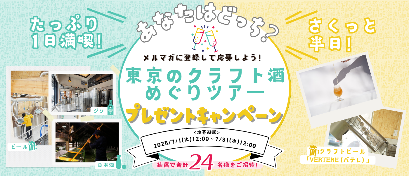 メルマガに登録して応募しよう!『東京クラフト酒めぐりツアー あなたはどっち?「たっぷり1日満喫」or「さくっと半日」 』プレゼントキャンペーン