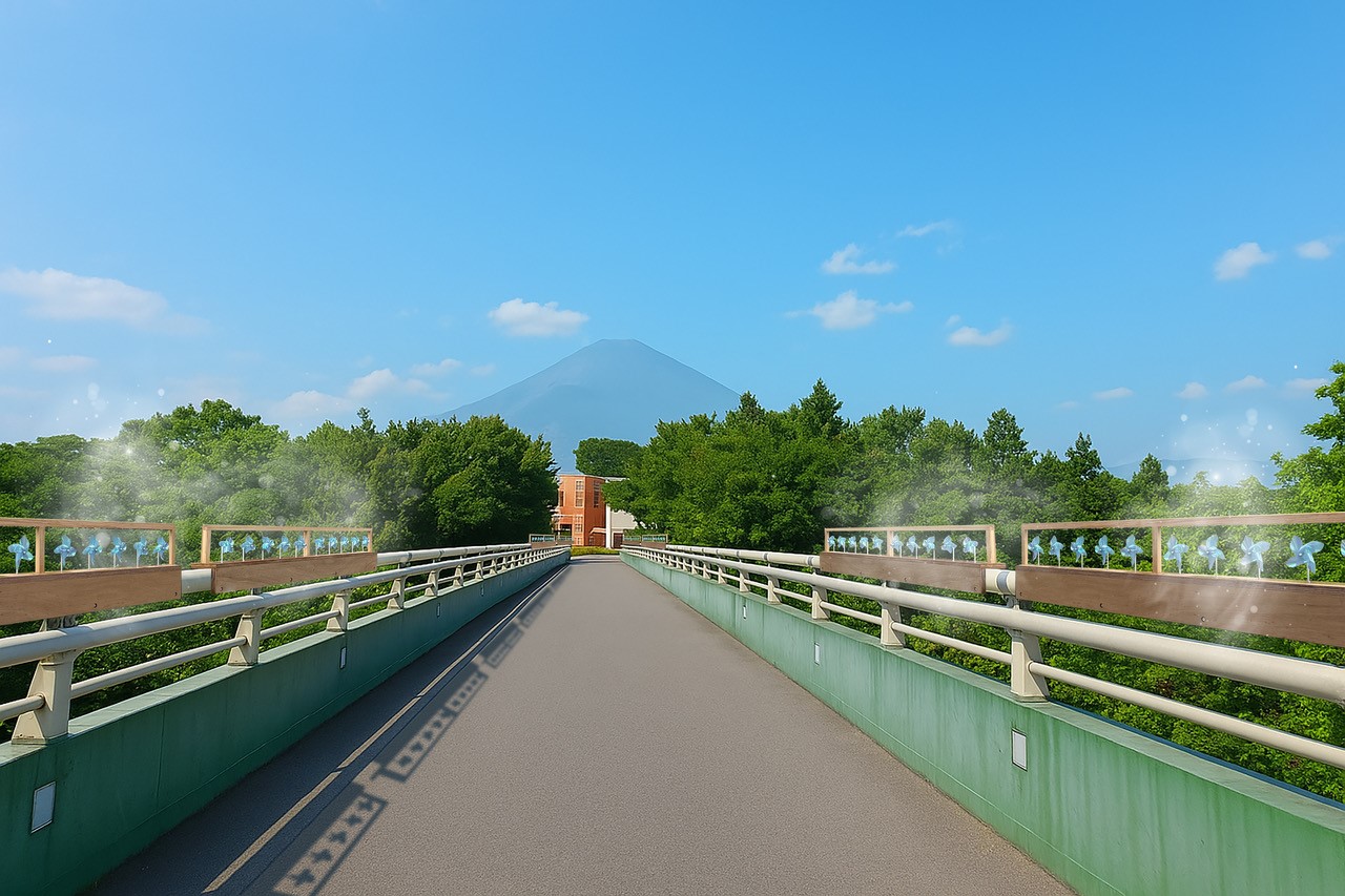また、夏を彩る演出として、富士山を望むEAST ZONEのストリートに華やかな彩りでフォトジェニックなランタン装飾が登場。施設内のエリアを結ぶ長さ180mの「希望の大橋」には風鈴、「夢の大橋」にはミストが吹き出る風車(かざぐるま)が飾られ、豊かな自然を眺めながら涼しげな音色やミストを感じていただけます。