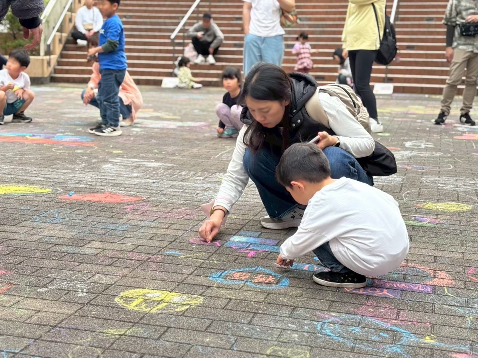 アウトレットの地面や黒板、お絵描きができるバン「チョークアート号」の車体にチョークで自由に絵を描いてお楽しみいただけます。また、また、アーティストと一緒に作品を作る、参加型の巨大アートも開催します。