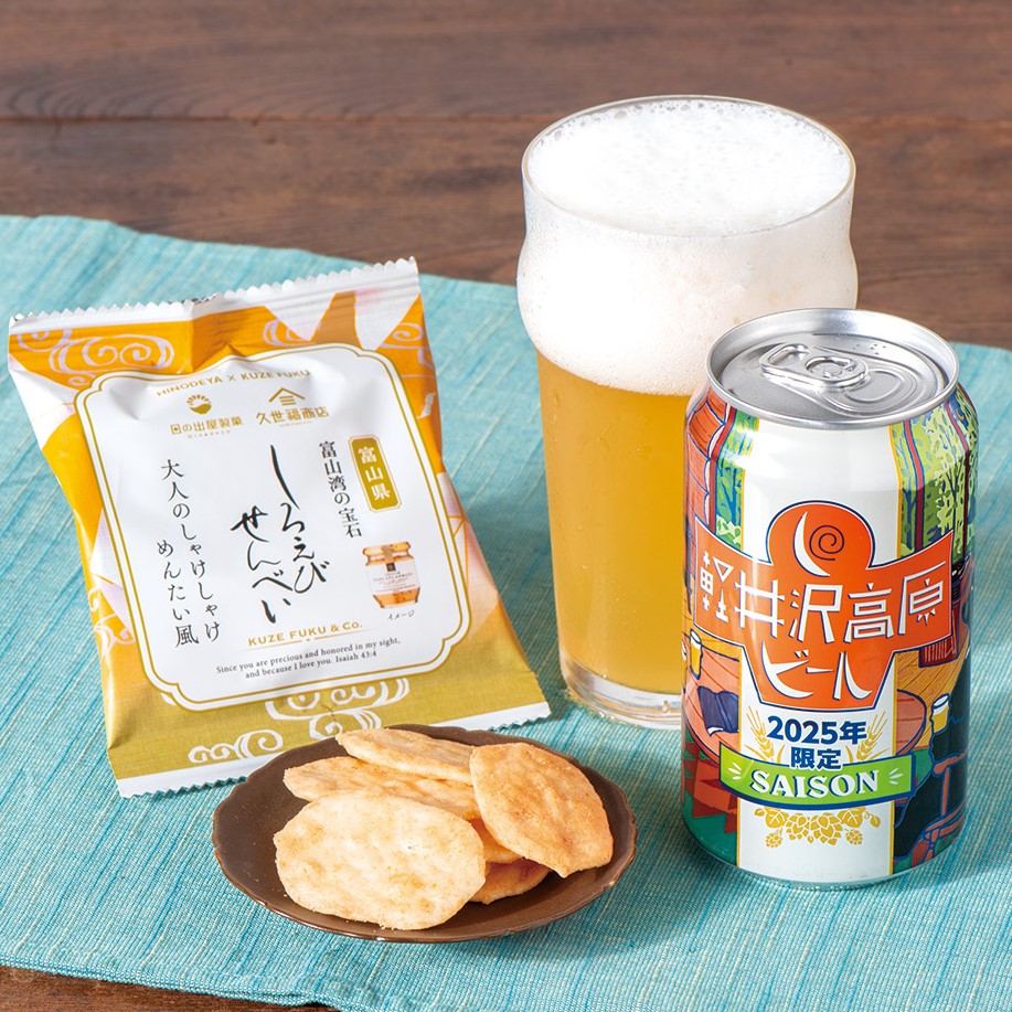 軽井沢高原ビール2025年限定×しろえびせんべい 大人のしゃけしゃけめんたい風