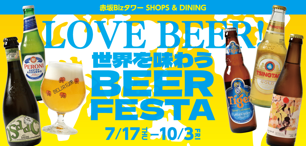 三井不動産商業マネジメント株式会社(本社:東京都中央区、代表取締役社長:大林 修)が運営する「赤坂Bizタワー SHOPS&DINING」では、ビール好きの皆様に向けた飲食フェア「世界を味わうBEER FESTA」を2025年7月17日(木)~10月3日(金)まで開催いたします。