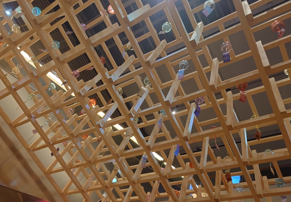 2025年は暑い夏を風鈴の音色で涼やかに過ごす日本伝統の「風鈴飾り」を展示。赤坂サカスの赤坂Bizタワーに訪れる皆様へ色とりどりの風鈴と音色で「涼」をお届けします。