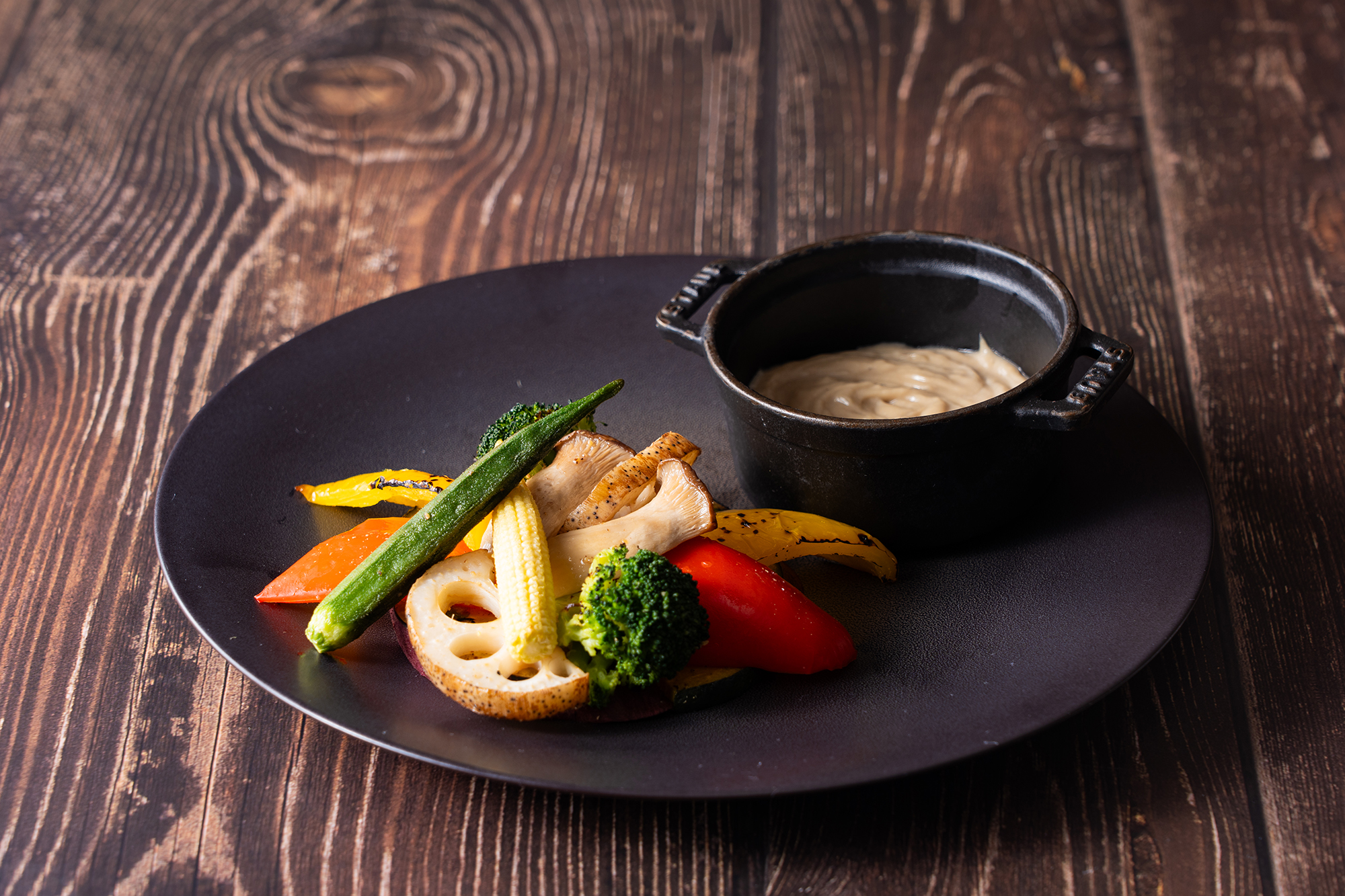 焼き野菜のバーニャカウダ (2,000円) ポークリエット バゲット添え (2,000円) |