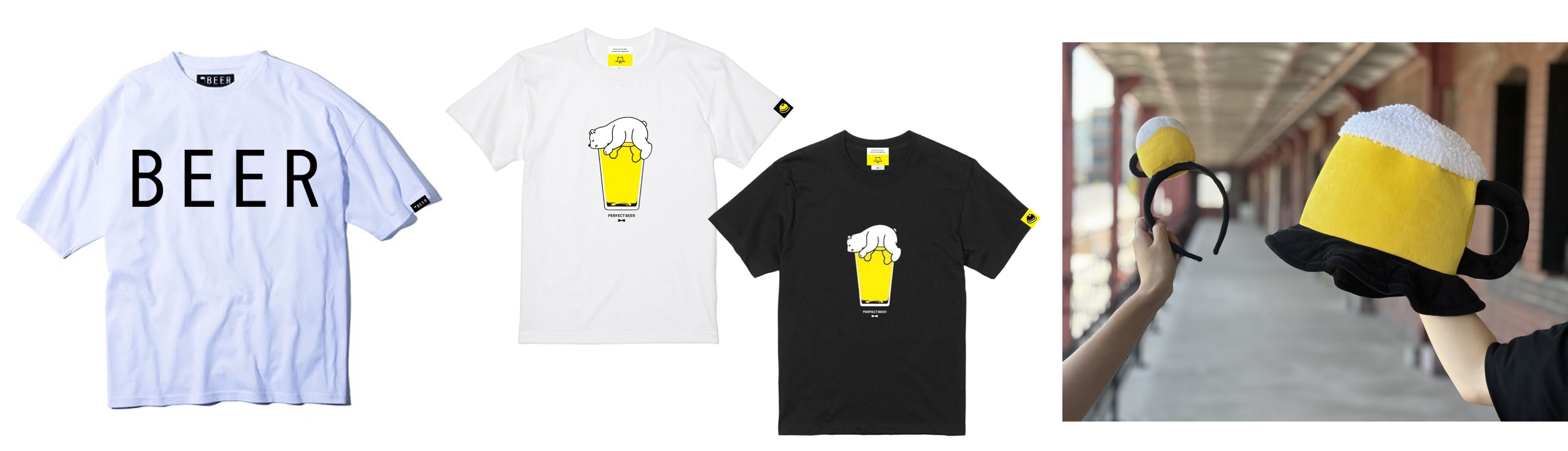 テーマパーク気分で過ごすのもよし!ビールをモチーフにした帽子、カチューシャ、アパレル等も販売します。賑やかで熱気に満ちた開放的な空間で、非日常感をお楽しみください。