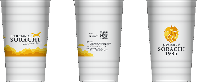 「BEER STAND SORACHI」は、世界が認めた伝説のホップ「ソラチエース」だけでつくられたビール「SORACHI 1984」のブランドコンセプトバーです。「BEER STAND SORACHI New Chitose Airport」では、提供方法にこだわったハイクオリティな「SORACHI 1984」をお楽しみいただけるほか、SORACHI 1984オリジナルグラスでの提供に加え、環境に配慮した100%リサイクル可能な「新千歳空港限定デザイン」のアルミカップでもご提供します。アルミカップでご注文いただいたビールは、空港内でそのままお楽しみいただけるほか、ご来店の記念やお土産としてお持ち帰りいただくこともできます。