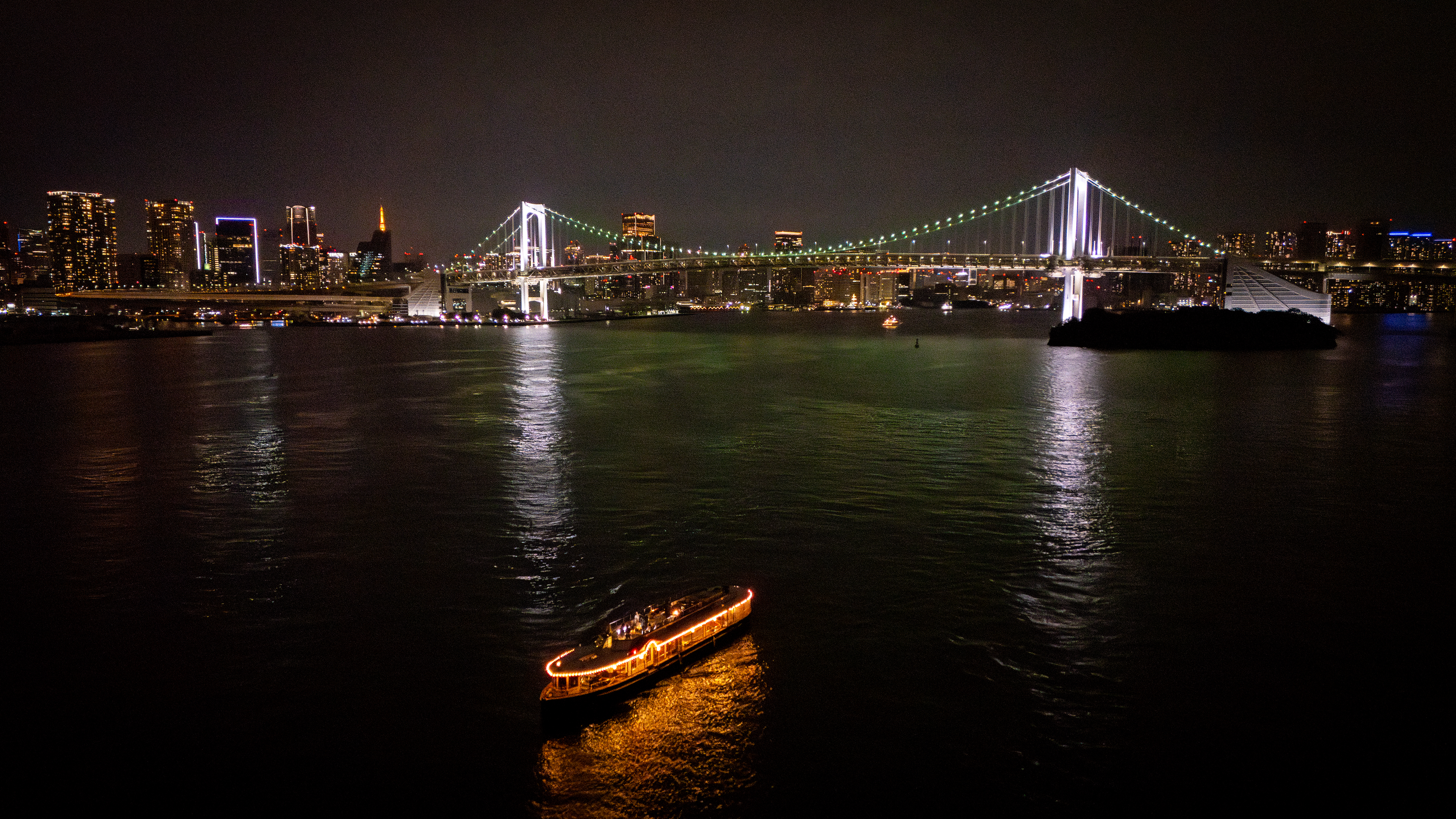 海風に加えて、開催日の近隣イベントに合わせて選曲されたフィーチャリングミュージックを楽しみながら、海の上からしか見られない夜の東京湾の絶景を楽しみましょう。