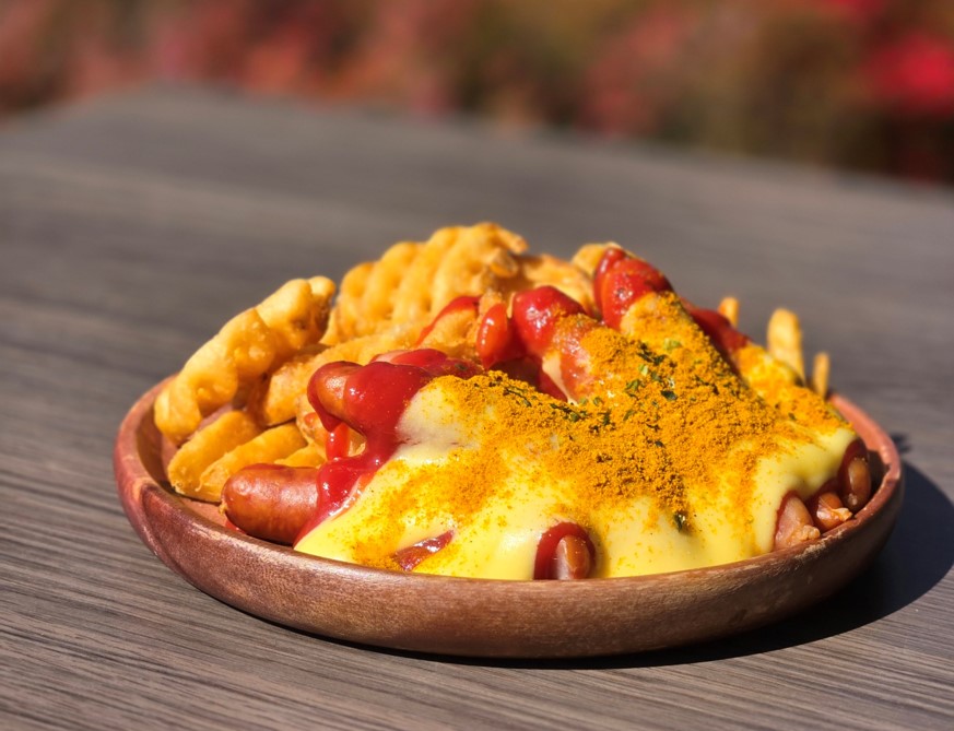 パリッとジューシーなソーセージに、たっぷりのトマトソースと食欲をそそるカレー風味のパウダーを合わせた、ベルリン名物のカリーヴルスト。クアトロチーズソースをたっぷりかけた、チーズ好きのためのカリーヴルストです!