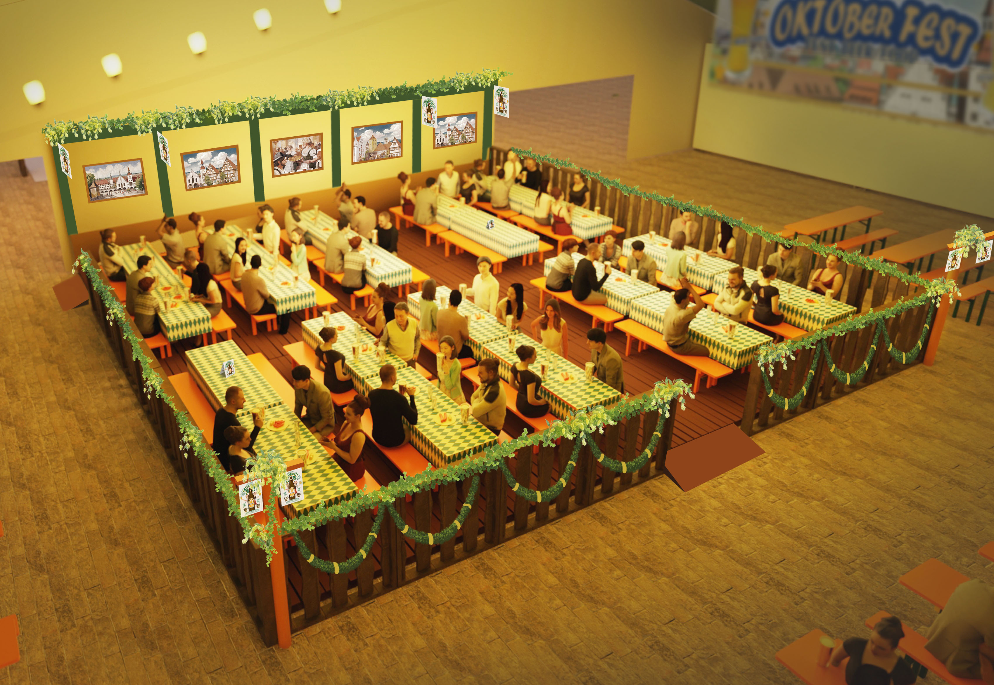 昨年初導入して、ご好評をいただいた「事前予約席」は、混雑を気にせず確実に座って楽しむことができるプレミアム空間です。ビールの原材料であるホップの装飾も施され、予約席限定でより一層本場ドイツの雰囲気を感じていただけます。