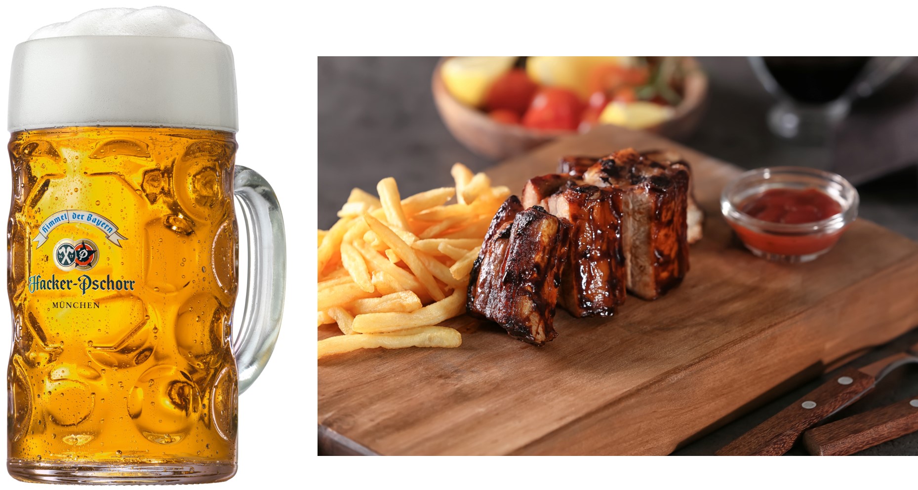 ミュンヘンオクトーバーフェスト公式6大ブランドのドイツビール。ハッカープショールで煮込んだスペアリブとの相性も抜群です。