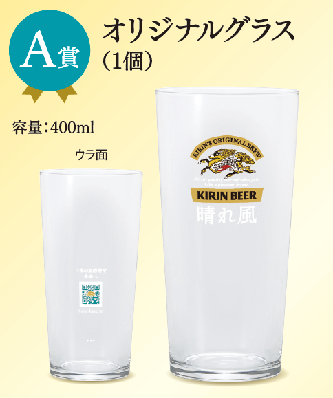 対象店舗にて「キリンビール 晴れ風」1本注文で、「晴れ風くじ」を1枚進呈。